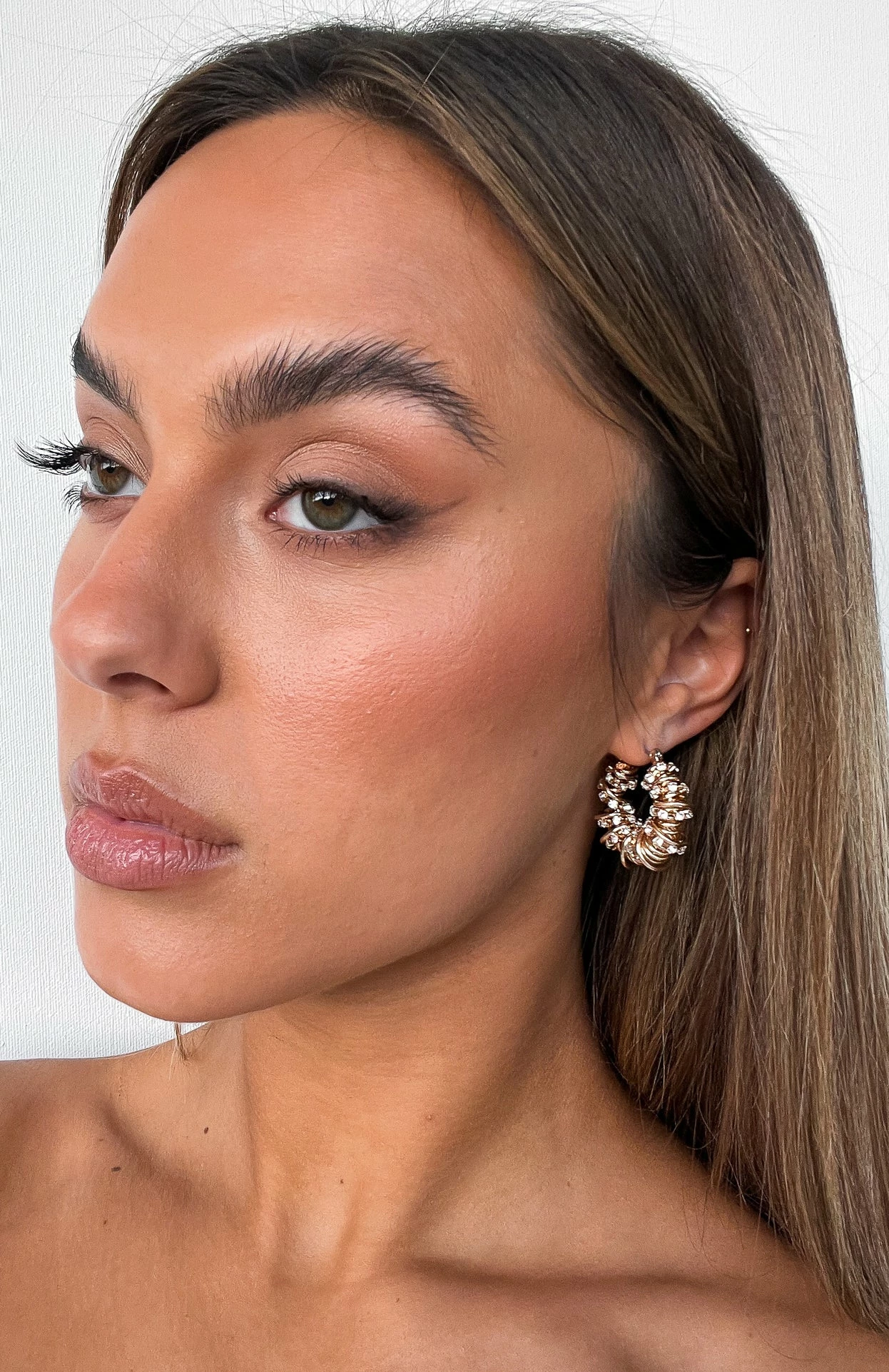 Your look of the day isn’t complete without the Alanna Earrings Gold. Featuring gold toned hardware, latch back closure and diamanté detail. We are in love!