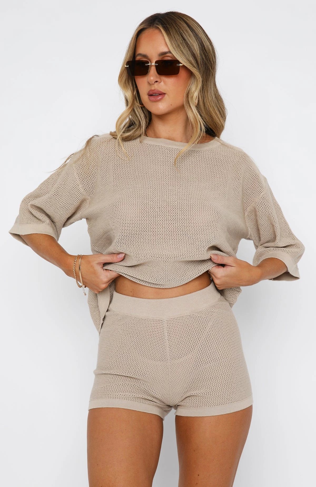 Slay in the Amuse Me Shorts Oat. Featuring a high, elasticated waist band and textured fabric. Keep the look effortless and pair it with the Good With Me Top and your go-to gold accesories!