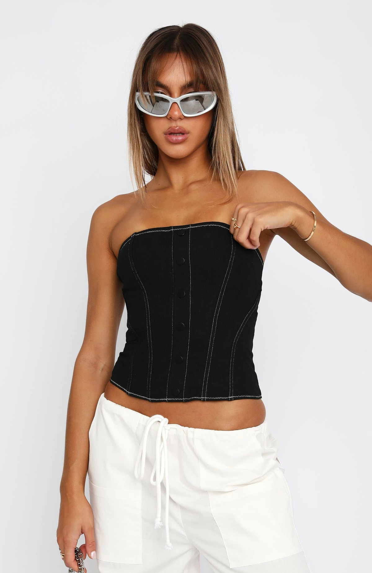 You’ll be influencing them all in our Another Heartbreak Bustier in Black. This strapless bustier features grip tape, boning in bodice, centre front popper design and zipper centre back. Complete the look with cargo pants and sneakers for a cool girl fit!