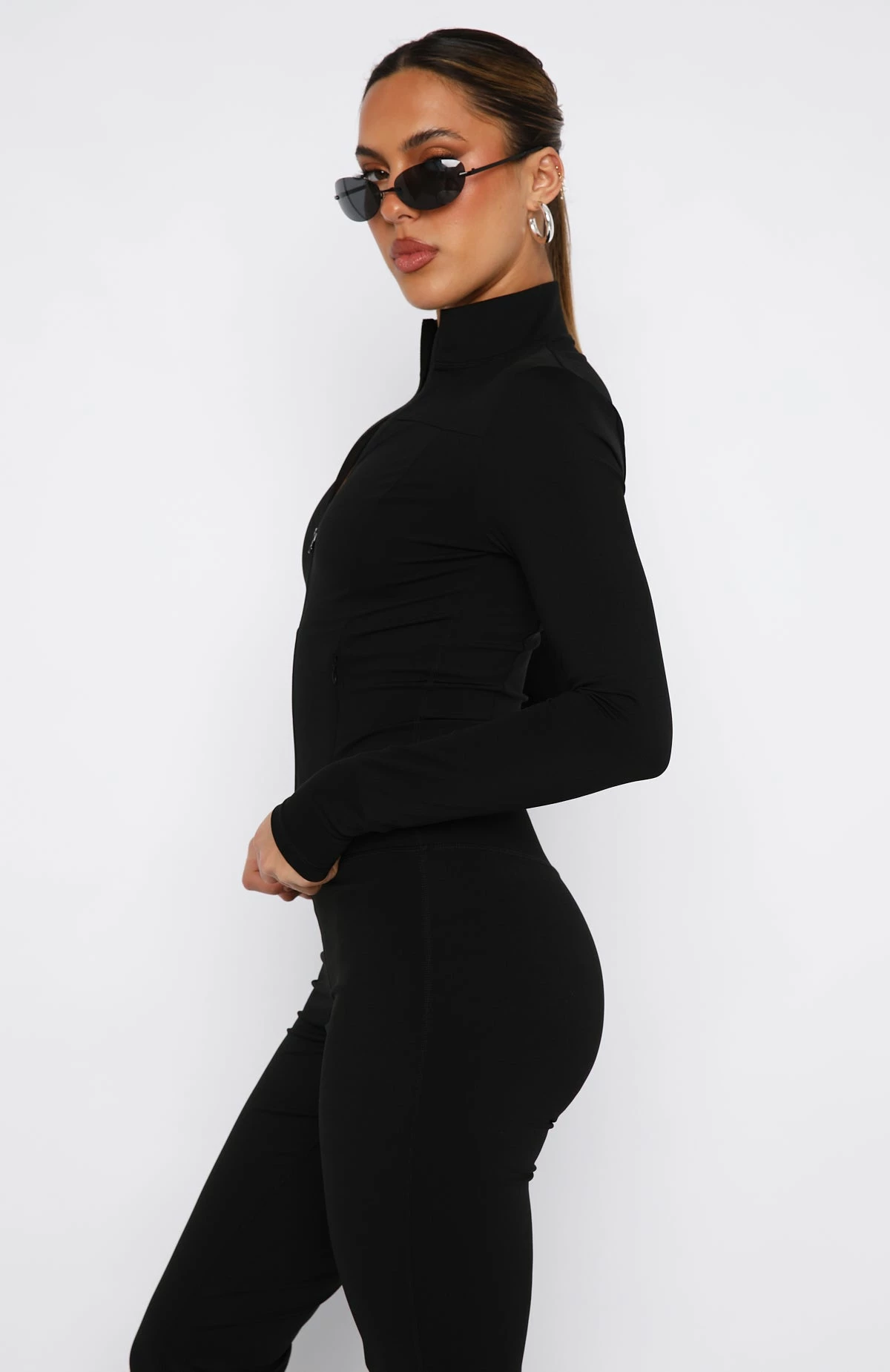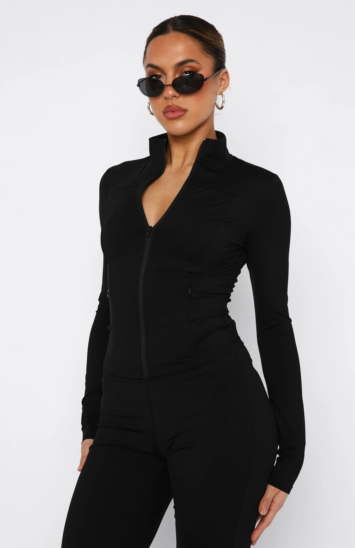 Meet your match. Give your gym edit an upgrade with the Bay Run Jacket Black! Features a high neck collared design, hidden centre front zipper, front pockets, tailored for a snug fit and full length. Pair with the Go Getter High Waisted Leggings Black for a snatched look!