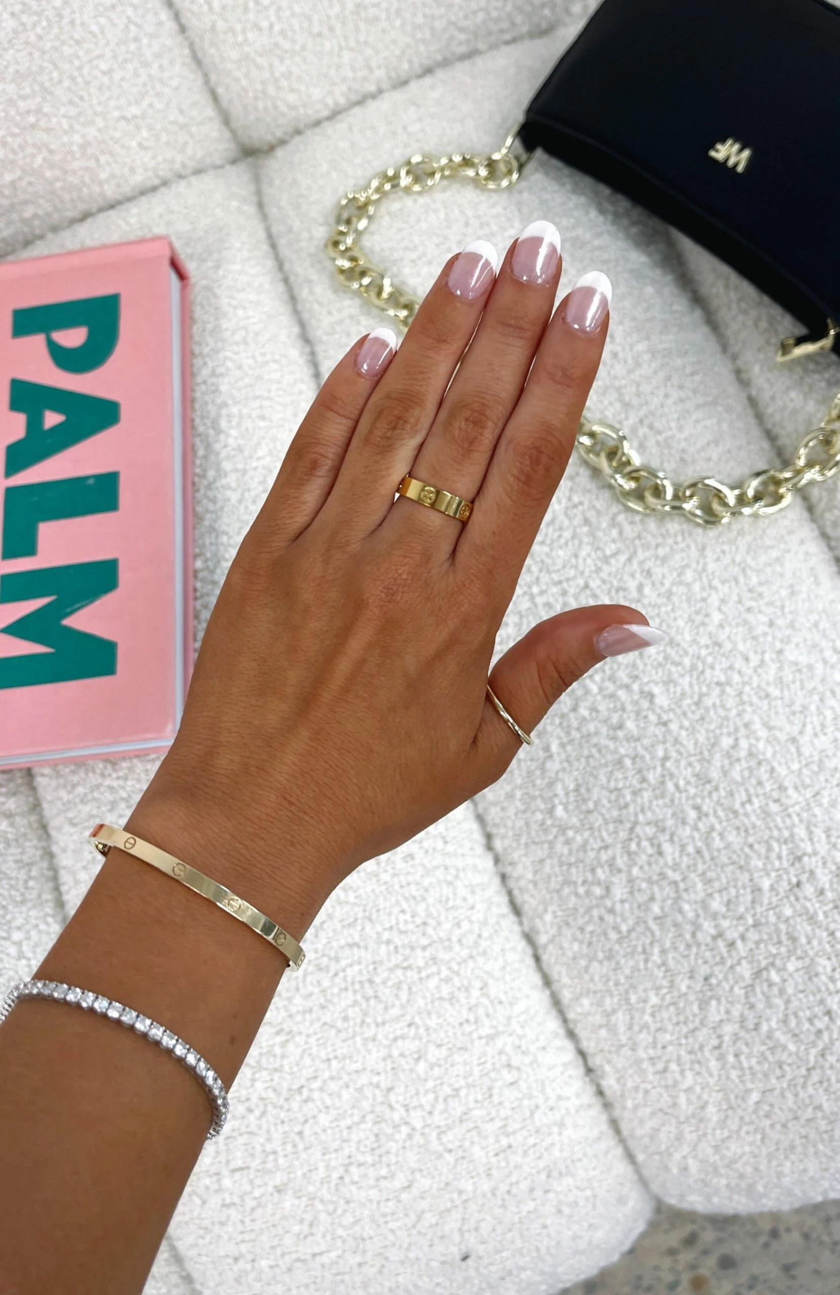 We are loving this ring for your everyday wardrobe! This is a thick, gold toned hardware ring. Just add to your outfit of the day to complete your look!