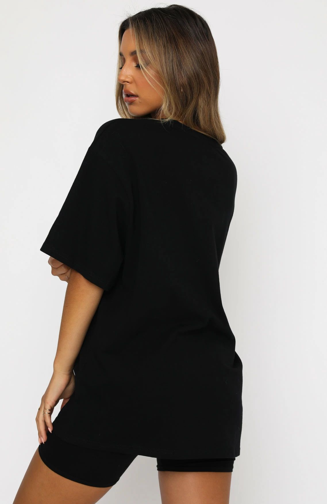We’re obsessed with the Catching Feelings Tee in Black for a chilled out vibe. This t-shirt is oversized with a round neckline and slouch shoulders with a printed centre graphic. Wear as a matching set with the Real Games Bike Shorts or dress it up with jeans & boots.