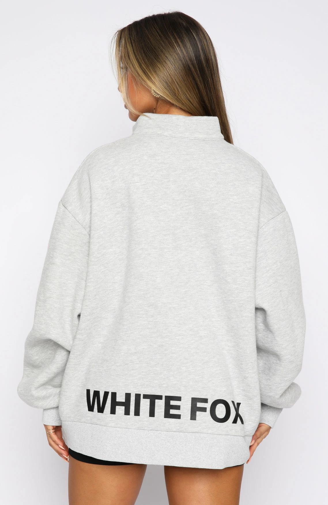 The Caught Up With You Zip Front Sweater in Grey Marle is the perfect comfy addition to any outfit. Featuring a vintage look and feel, zip front, ribbed hemline and cuffs, printed logo and quote on front side and a soft fleece lining for ultimate comfort. Just add bike shorts to complete the look.