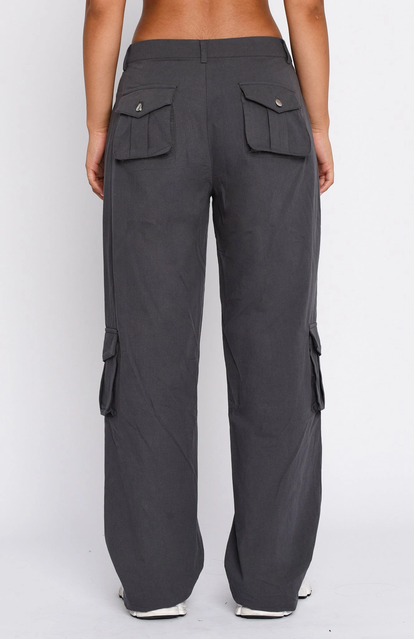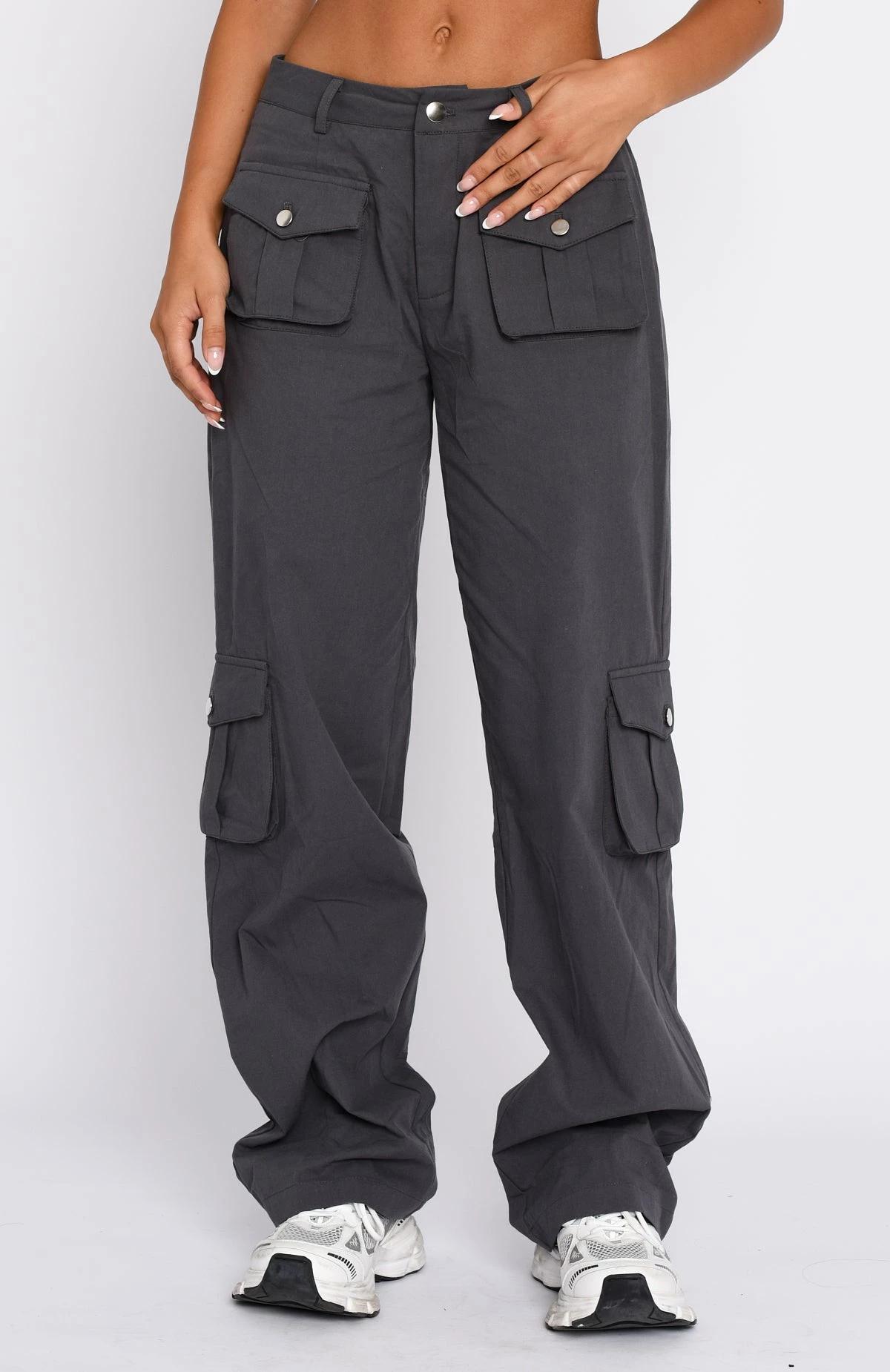Channel everyday street style in the Clear My Mind Cargo Pants in Charcoal. Featuring a cargo design and a straight leg fit, belt loops, button/zip closure and front and back pockets. Complete the look with a cute crop and sneakers for a look we love!