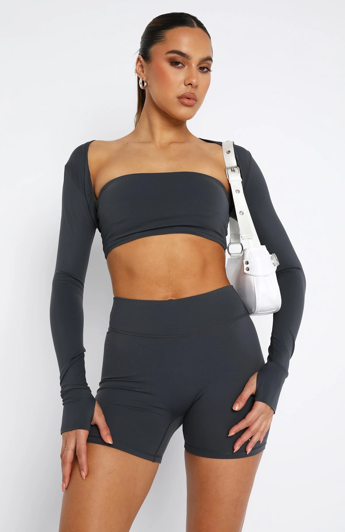 Hot girl walk approved: the Counting Reps Bolero Charcoal. Featuring long sleeves, mesh lining and soft, stretch fabric. Pair over a cute active crop top and leggings for an on-trend look!