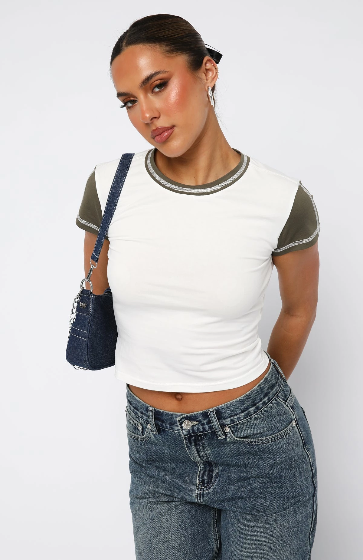 The Daytime Look Top in White is the basic your wardrobe needs! Featuring a cropped length, short sleeves, high neck fit, fitted and soft stretch fabric. We love this paired with cargo pants and sneakers for the ultimate weekend fit!