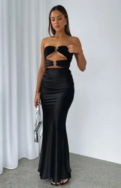 Add a little sparkle to your event-ready ‘fit with this Deep Hearts Strapless Maxi Dress Black. Featuring a maxi length, strapless style, ruched fabric, round metal front design with cut outs, centre back zipper with hook & eye, open back with tie detail and soft silky fabric. Pair with perspex heels and a mini bag for a fit worthy of your next insta post!