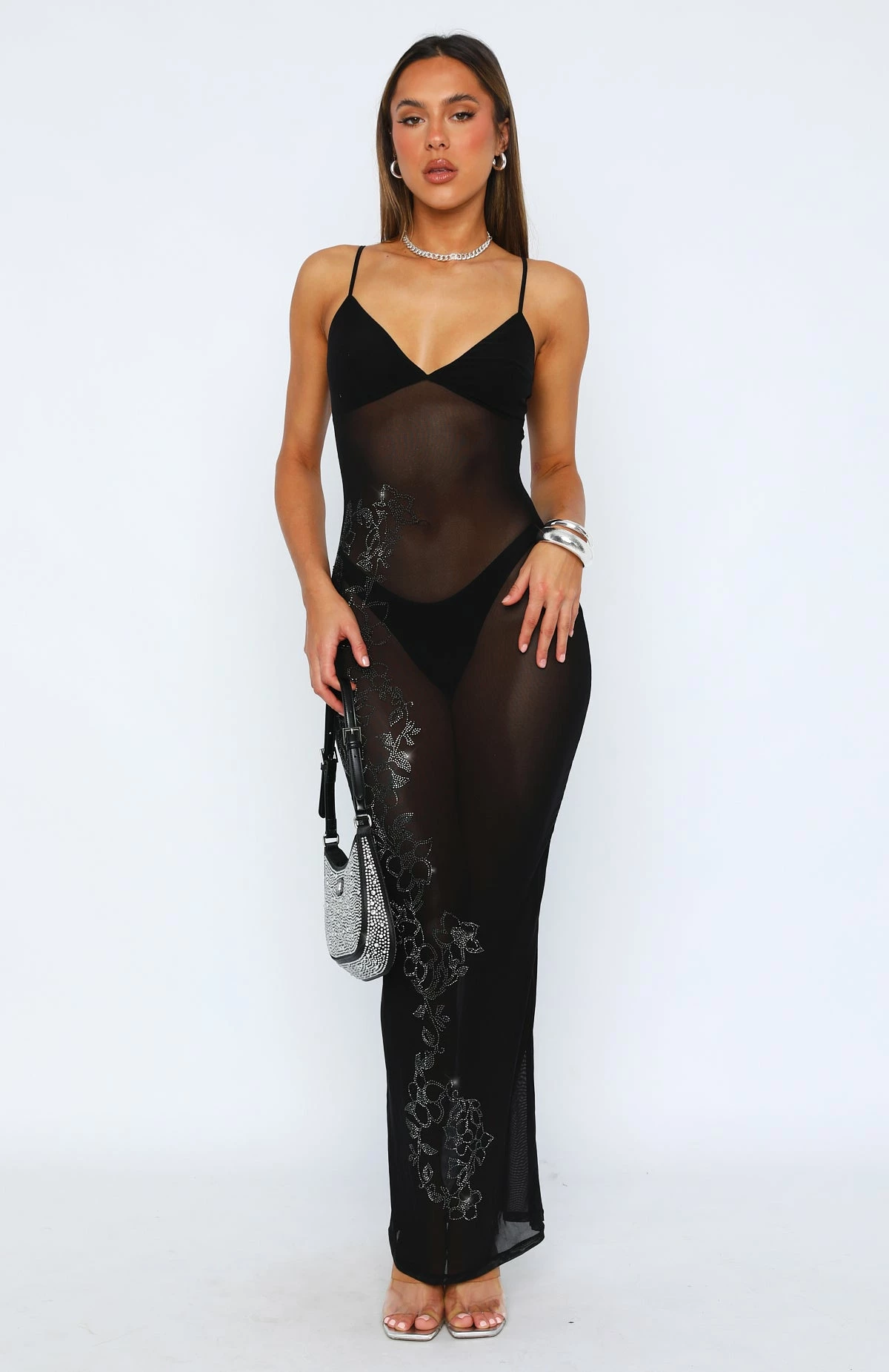 For the bold type! The Diamonds Dancing Maxi Dress Black will do all the talking. Featuring a low-neckline and sheer, lined bust, mesh stretch fabric. Pair with gold hoops and heels for a glam look or dress it down with sneakers and a cute mini bag. We are obsessed!