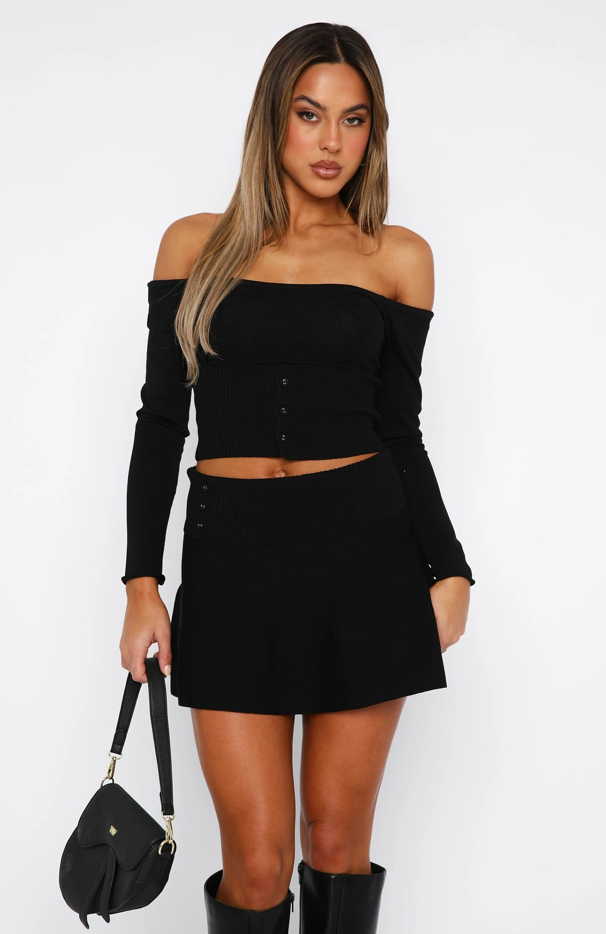 She is the moment. The Emotional Long Sleeve Knitted Crop Black features an off the shoulder design, ribbed knit fabric, front button closure, ribbed waistband and comfy, stretch fabric. Pair with the Good To You Knitted Mini Skirt Black for a complete and gorgeous look. We’re in love!