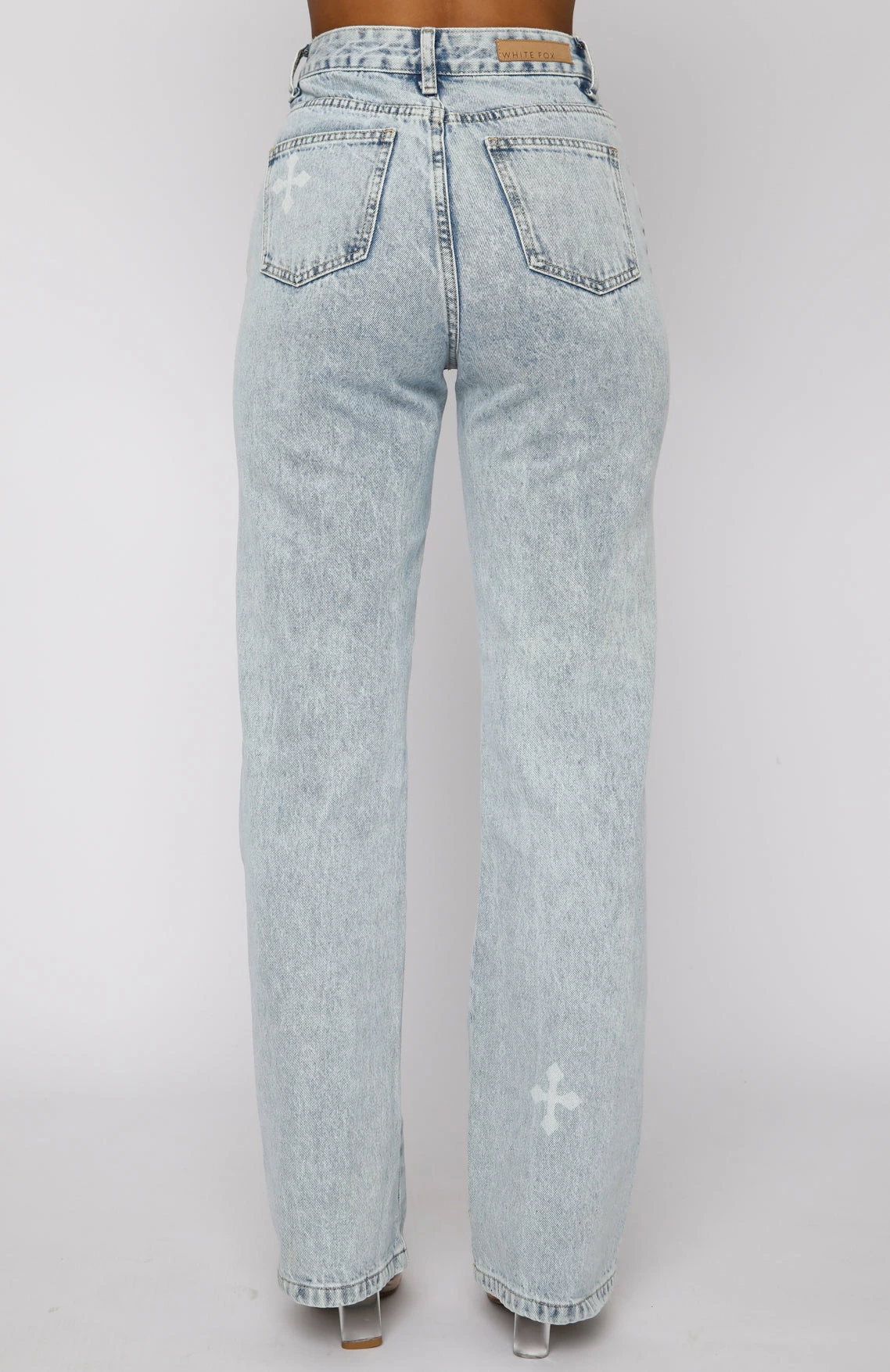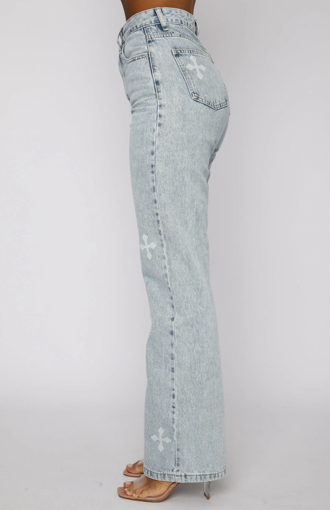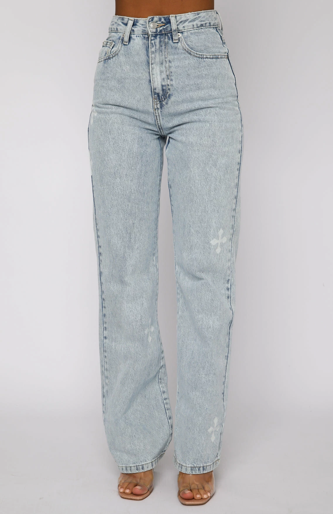 The hottest new trend, printed denim. The Escape Reality Jeans in Washed Blue Print are high waisted with zipper & button closure at front, belt loops, distressed rip detailing, 5 pocket design, straight leg fit, non stretch denim and print detail. Pair with a crop top or t-shirt for a relaxed everyday look.