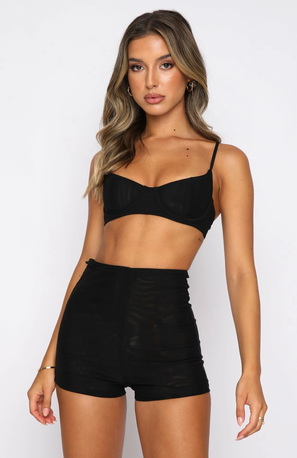 What’s not to love about the Executive Crop in Black. Featuring a double clasp back closure, thin adjustable straps, under-wire cup details, bralette and self lined cups. Pair with the Unavailable Hot Pants for your next festival this summer!