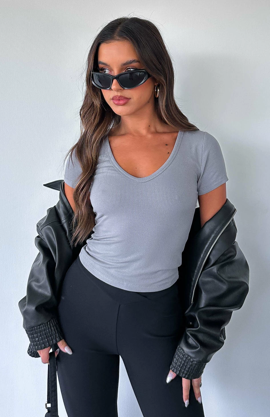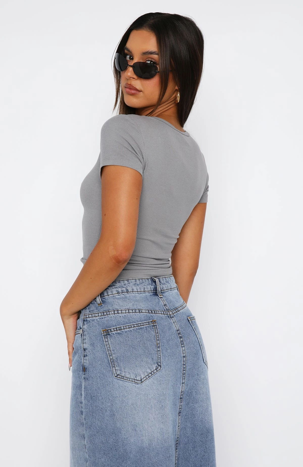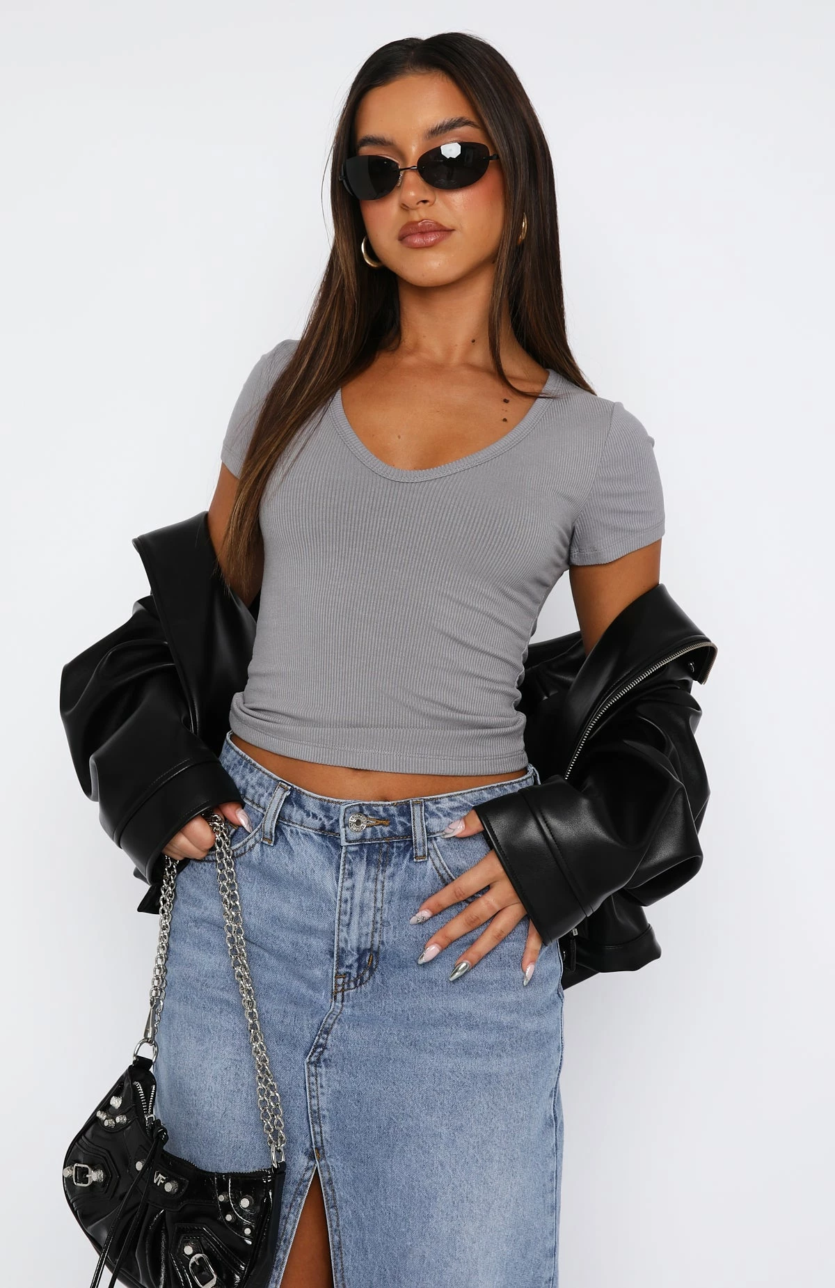 The Hearts On Fire Top in Grey is the basic your wardrobe has been waiting for! Featuring low scooped neckline, short sleeves, mesh lining and ribbed, stretch fabric. Complete the look with your favourite pair of White Fox Denim Jeans and sneakers for the perfect weekend fit!