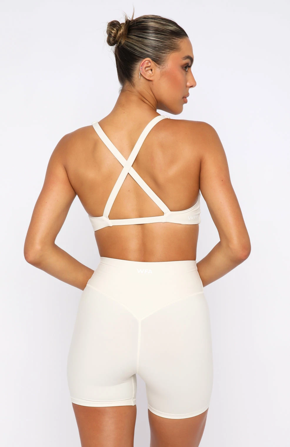 Elevate your gym-drobe with the High Definition Sports Bra in Stone. Features a plunge neckline, thick stretch straps, fitted design, criss-cross back design, lined, removable padding and custom patch detail. Pair with one of the matching Go Getter High Waisted Leggings or Keep Up High Waisted Shorts for a look we are loving!