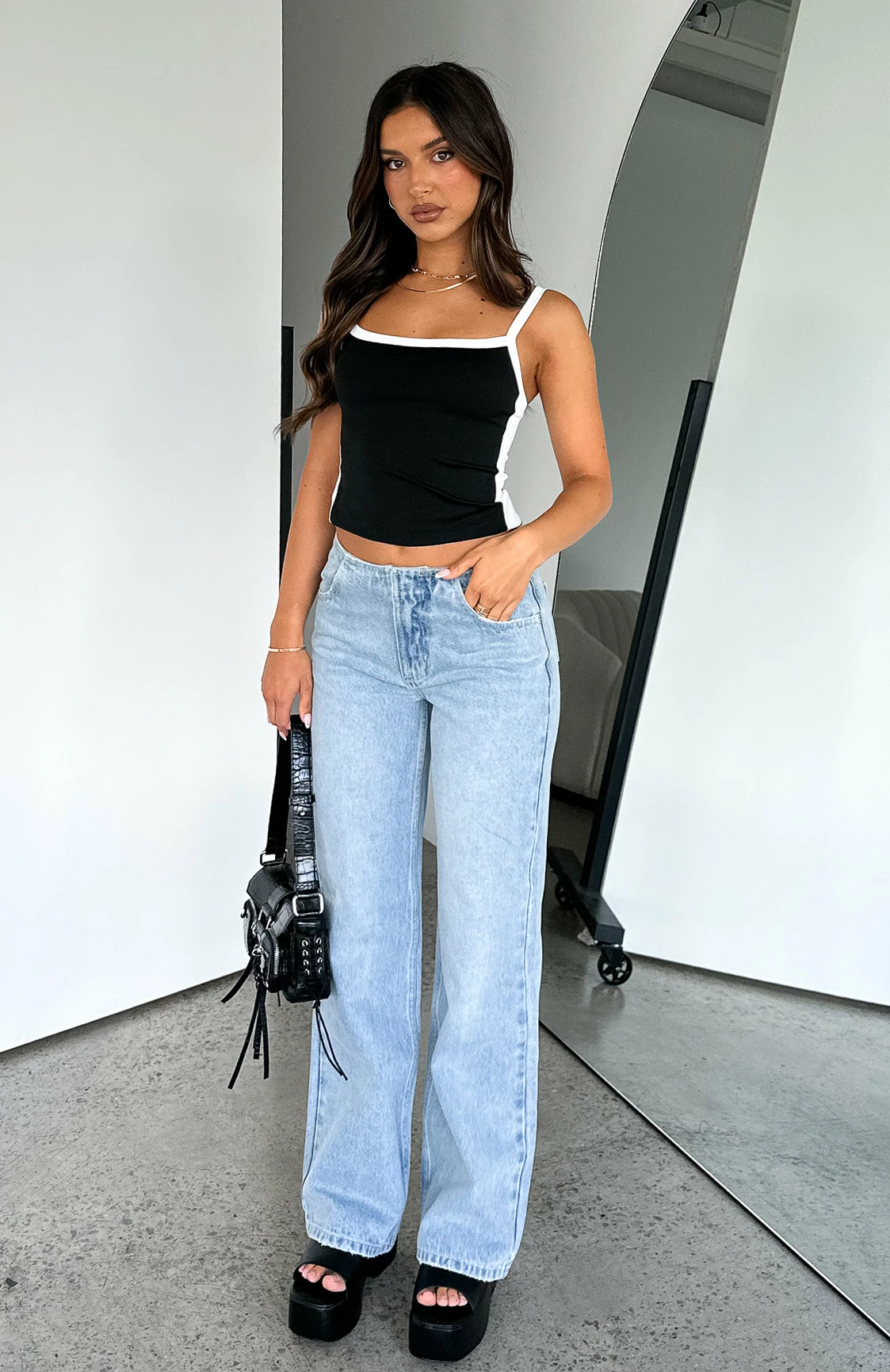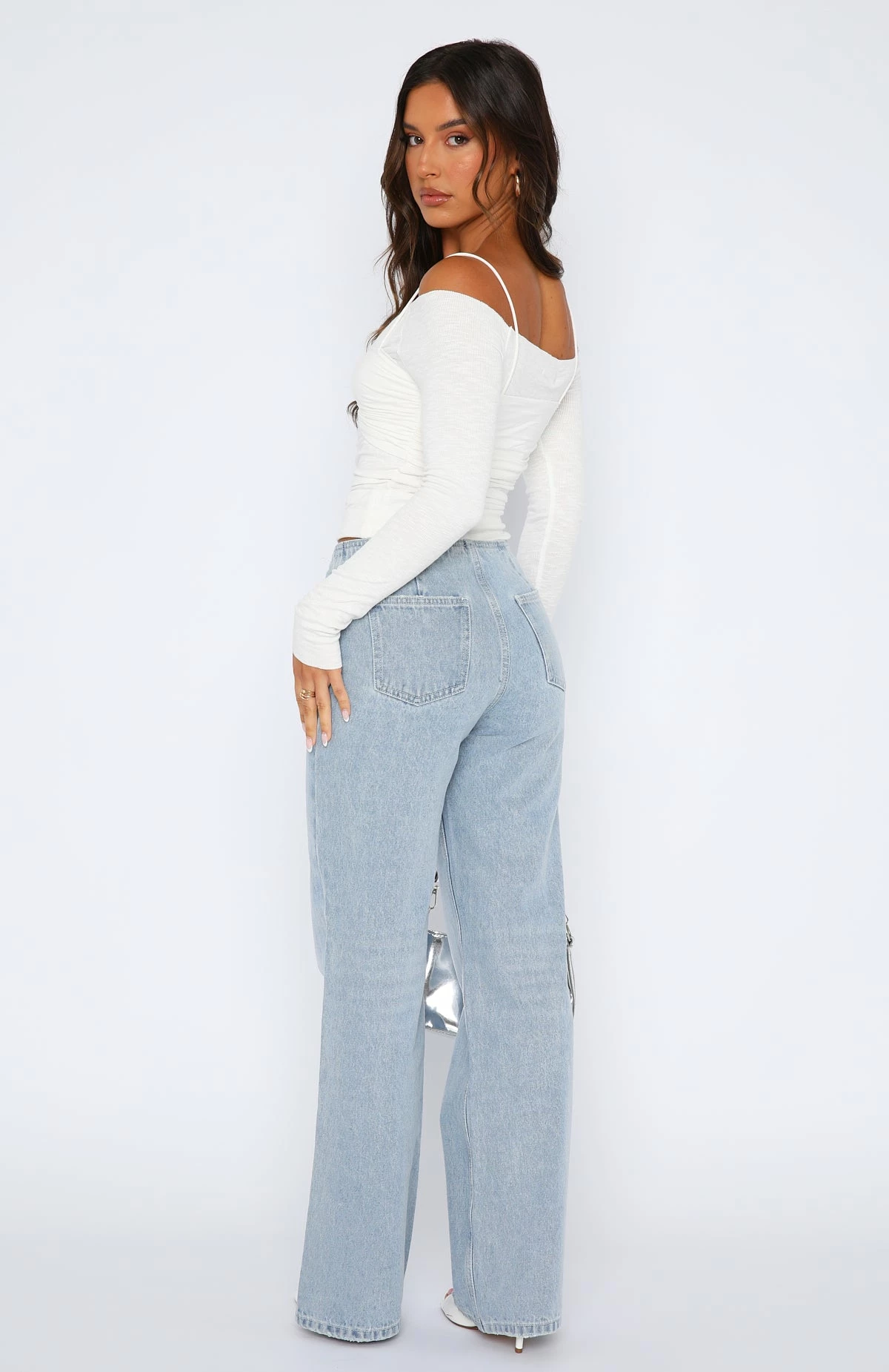 Looking for your outfit of the day? The In Heaven Jeans Light Blue Wash are a cool and effortless choice. These relaxed fit jeans are a straight leg style and are high waisted with clasp closure & zip at front, 4 pocket design and are full length. They are perfect for dressing up or down with sneakers or heels.