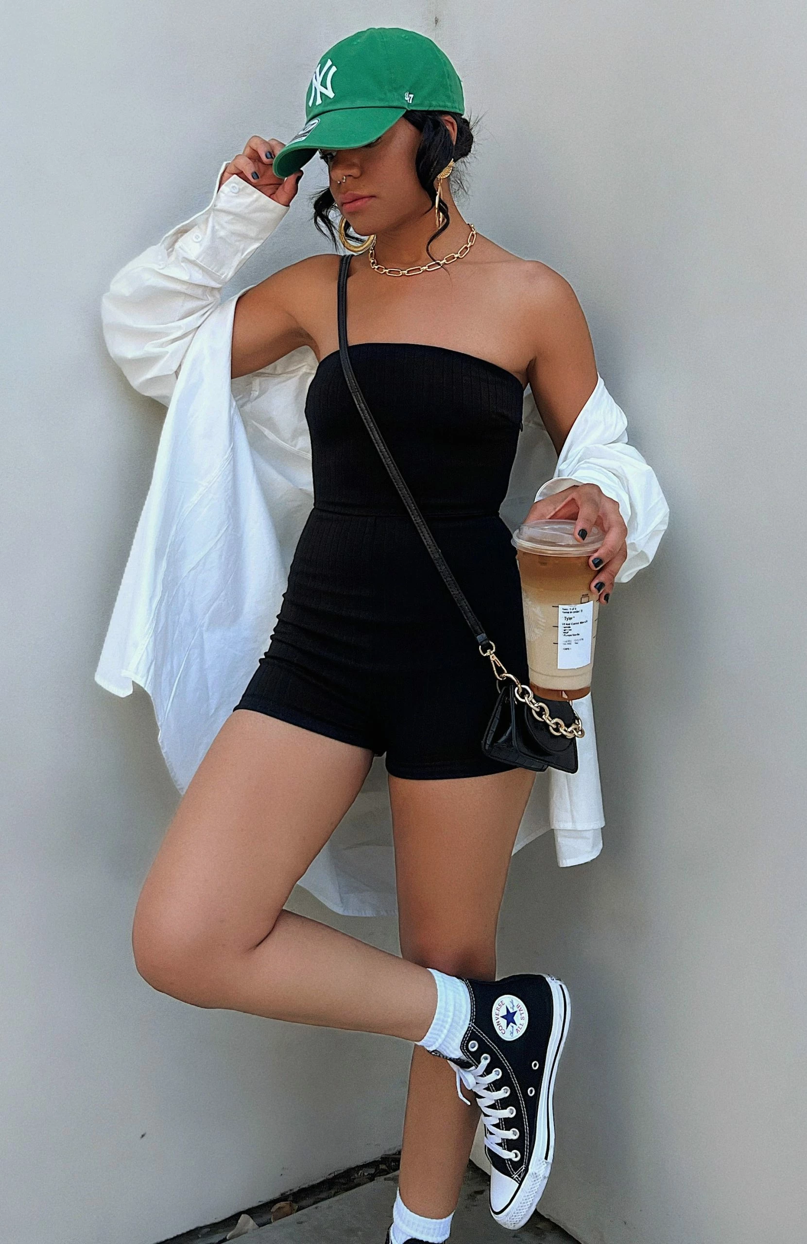 The Island Ribbed Playsuit in Black is a summer staple. This strapless playsuit features invisible side zipper, mini short length and ribbed stretch fabric. Complete the look with slides and gold accessories for a total dream girl look.