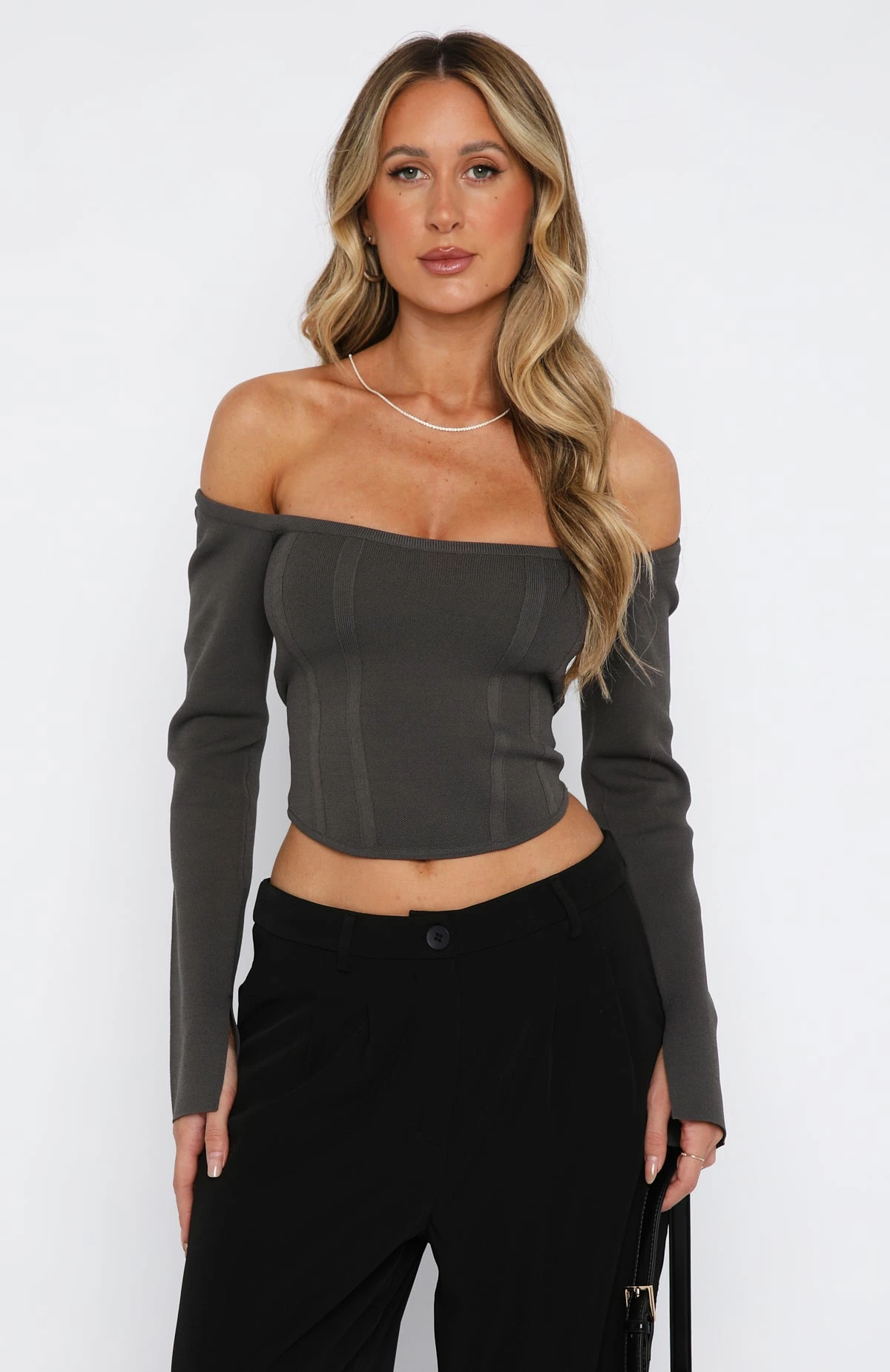 Grab yourself this It’s Just Us Long Sleeve Top Charcoal as the styling staple for the new season. Features an off the shoulder fit, ribbed knit fabric, split seam detail on sleeves and stretch fabric. Pair with your favourite White Fox Jeans and a mini bag for a flawless finish!
