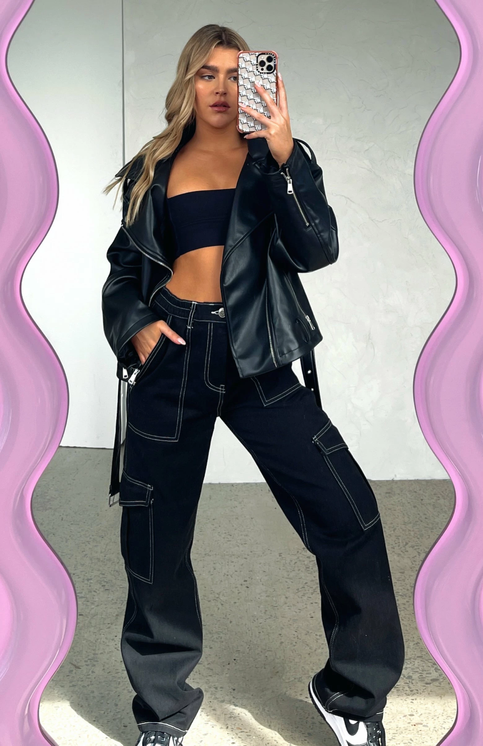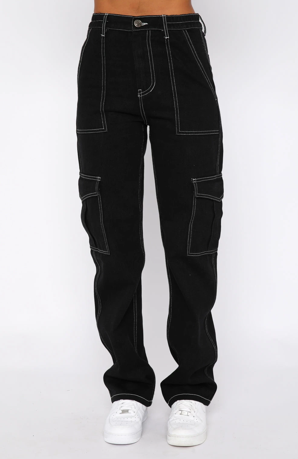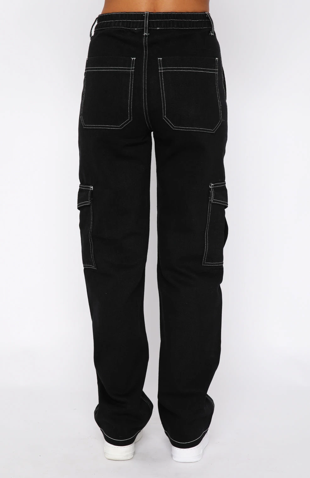 The coolest new fit the Keep On Moving Jeans in Black. They are a mid rise relaxed fit with contrast stitching, 5 belt loops and side & back pockets. Style yours with sneakers and a crop.