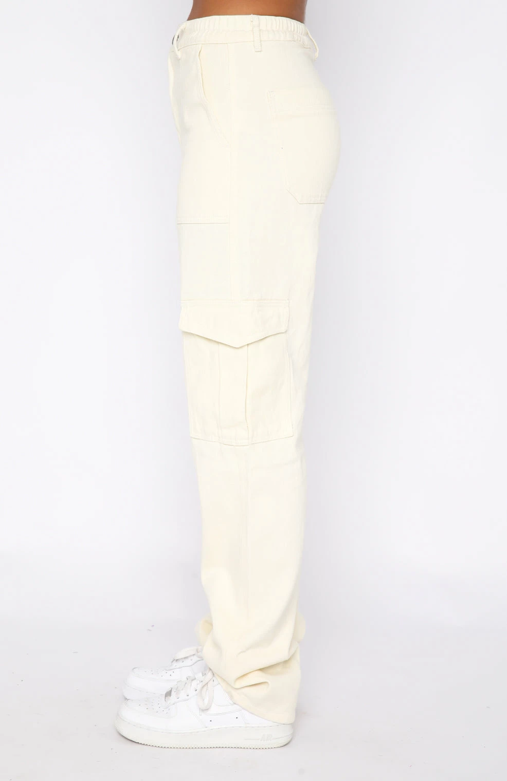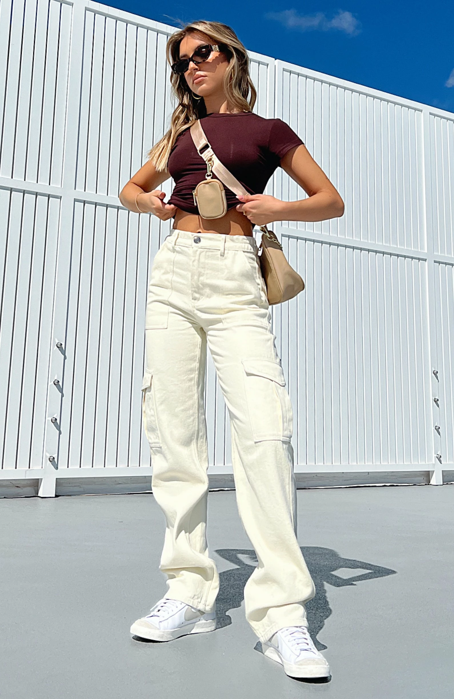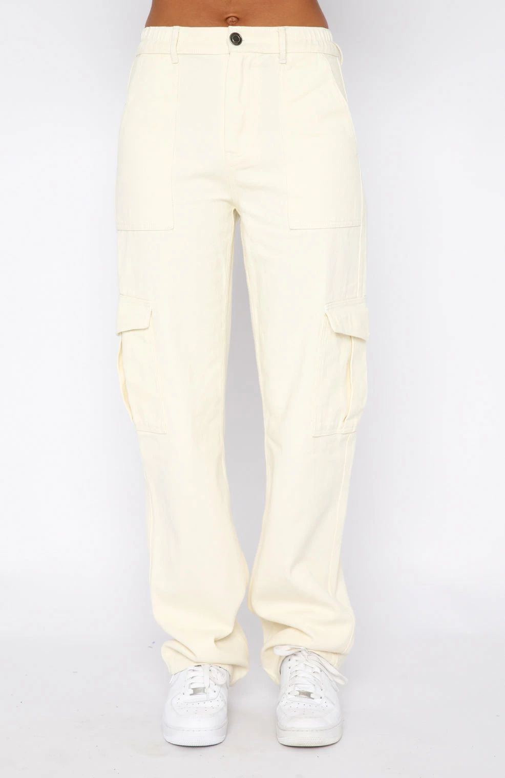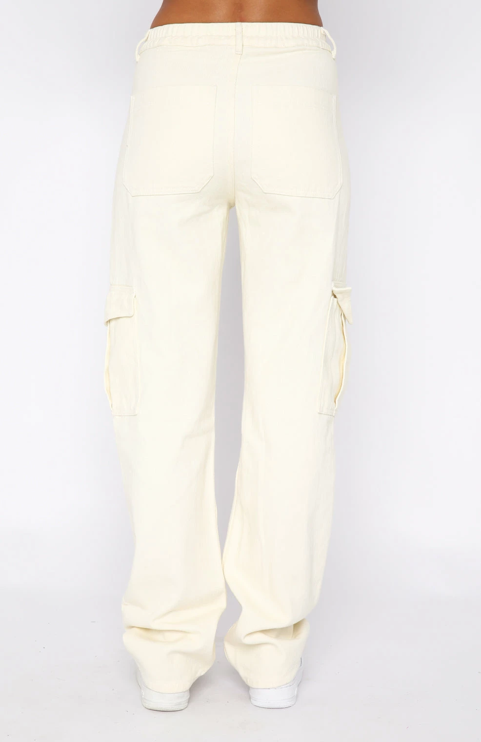 The coolest new fit the Keep On Moving Jeans in Cream. They are a mid rise relaxed fit with contrast stitching, 5 belt loops and side & back pockets. Style yours with sneakers and a crop.