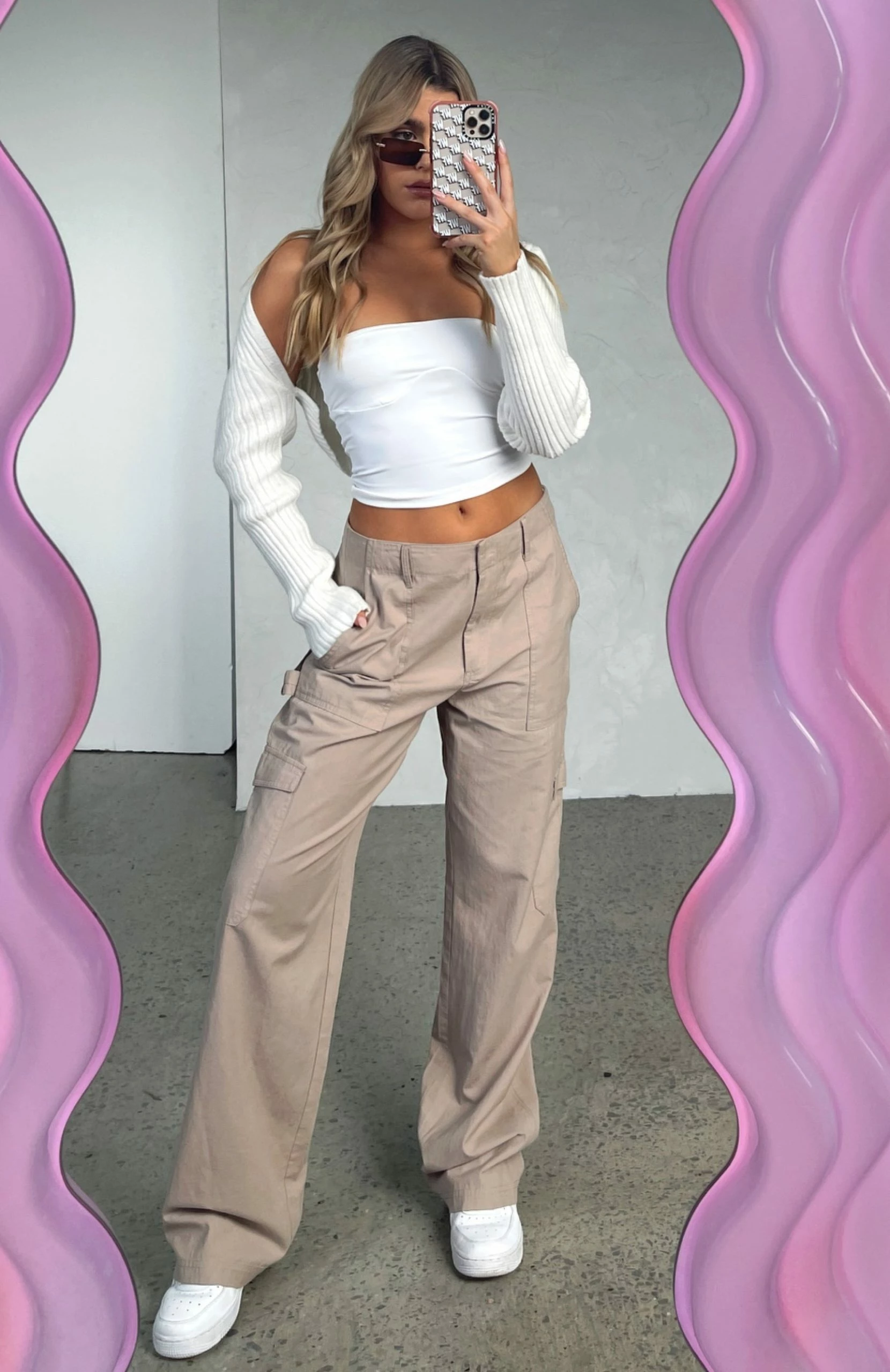 Upgrade your go-to everyday outfit with the Know Your Worth Cargo Pants in Beige. Featuring a cargo design and a wide leg fit, belt loops, button/zip closure and side pocket design on legs. Complete the look with a bustier and sneakers for a super cute look.