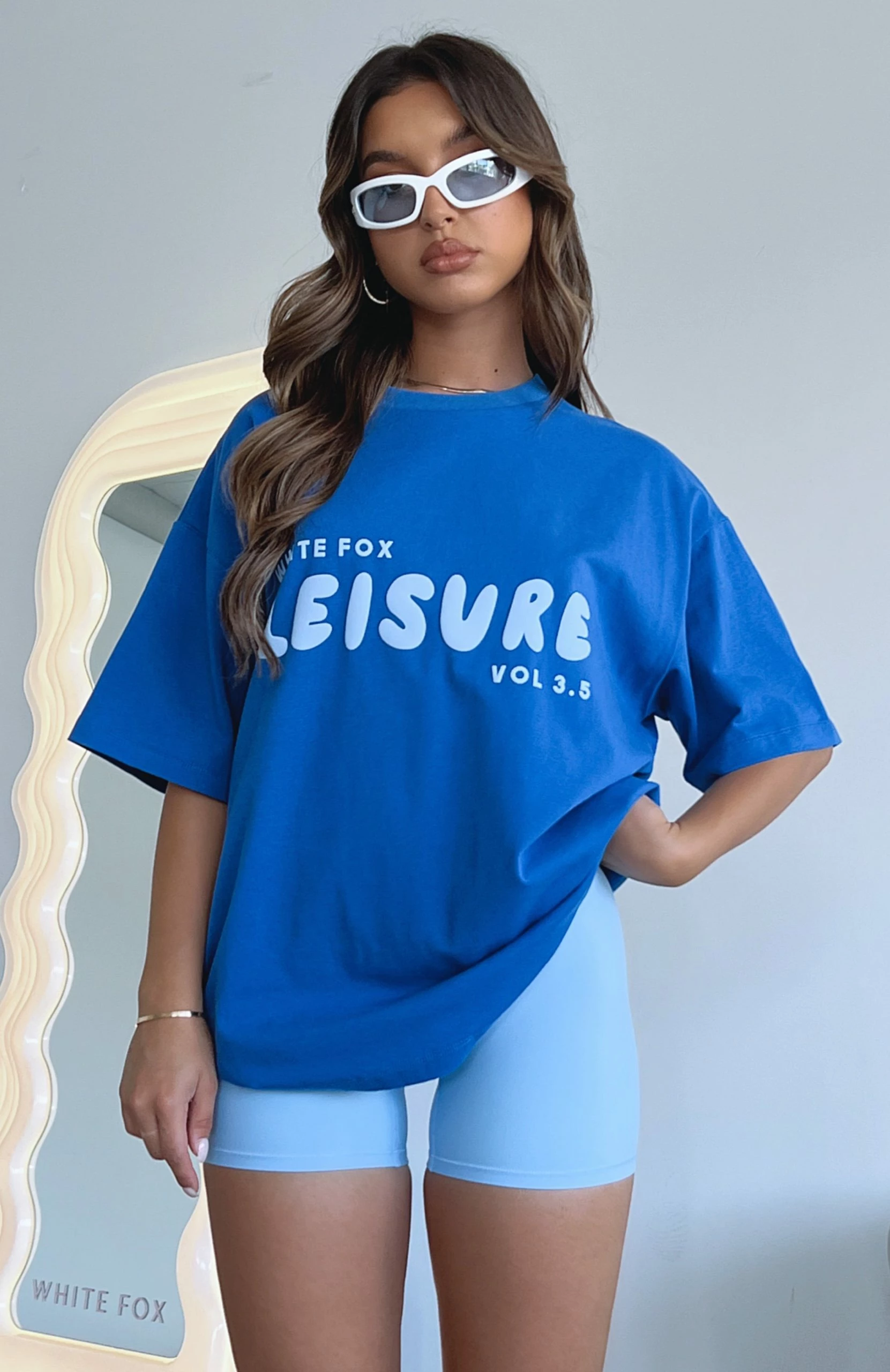 Switch up your stay at home look with the Leisure Series Oversized Tee in Cobalt. It is an oversized fit with slouch shoulders, round neckline, and puff print logo centre front. Pair with bike shorts and sneakers for the perfect chill day fit!