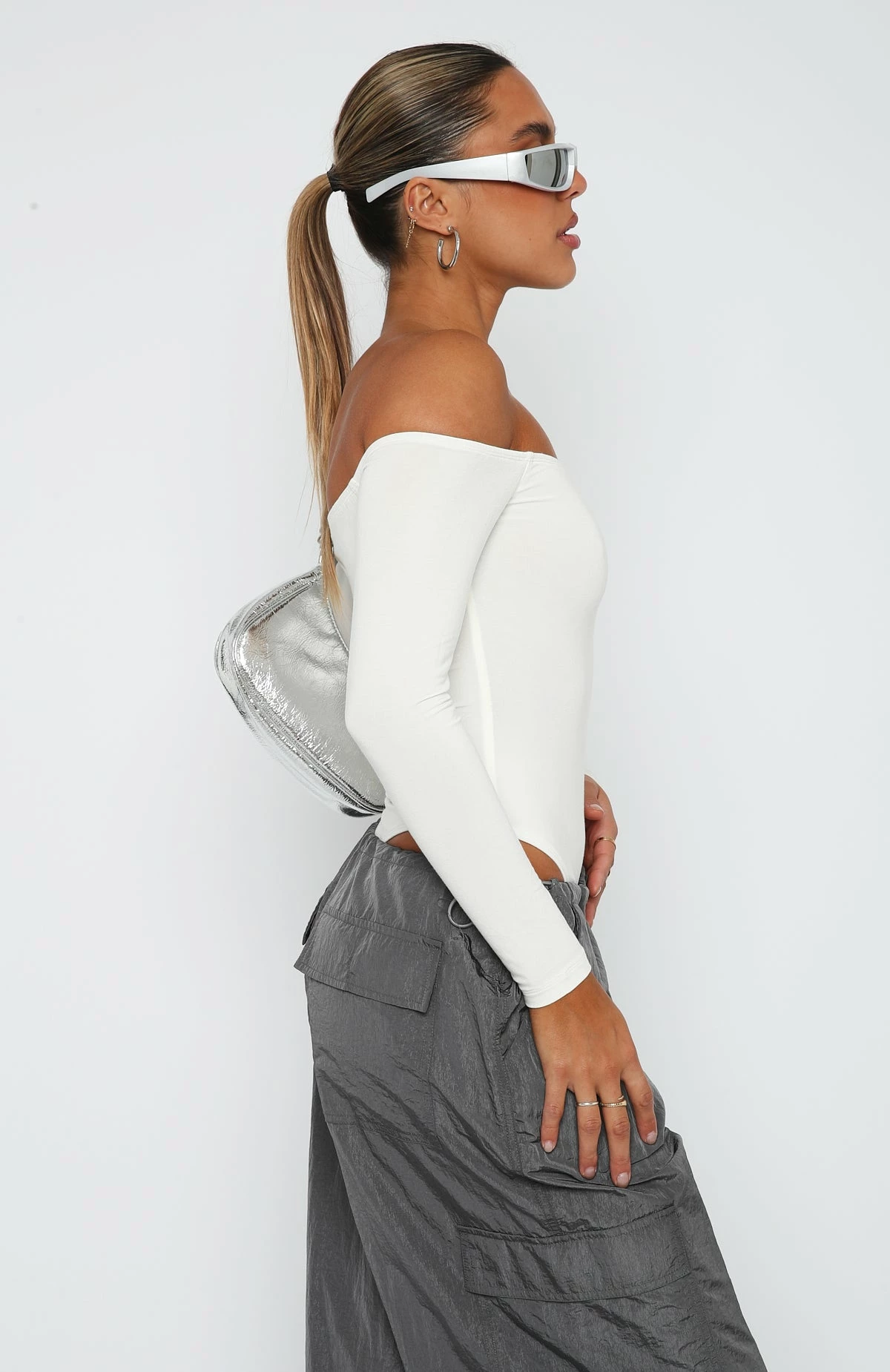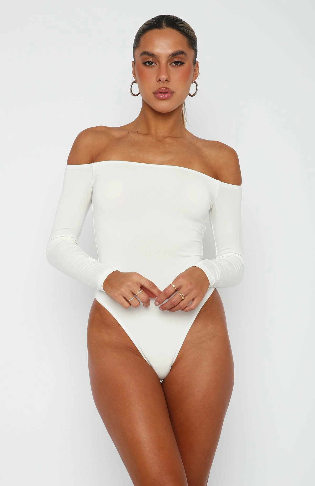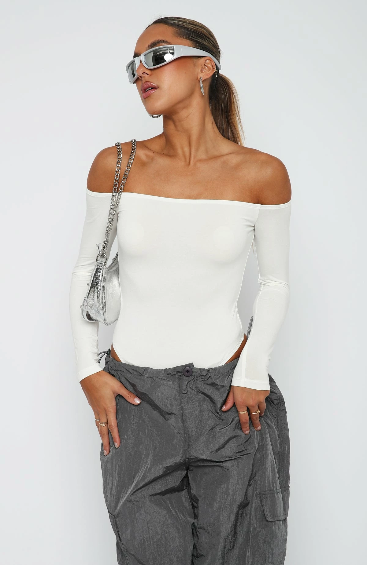 The Lose My Mind Long Sleeve Bodysuit in White is the wardrobe staple you need!