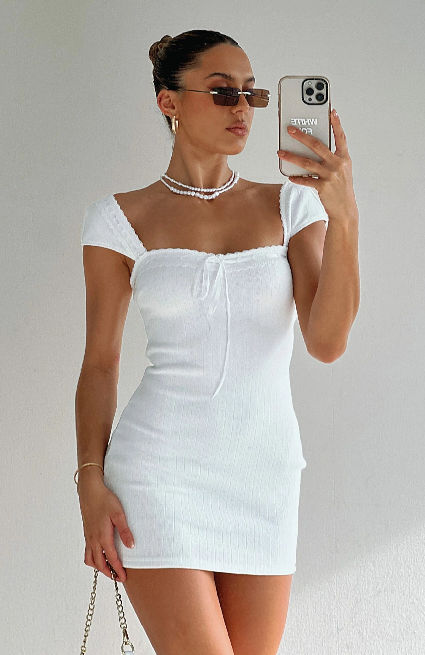 Pretty and girly is how we would describe the Love Somebody Mini Dress in White. Featuring short sleeves, straight neckline, lace bust detail, and lined, broderie anglaise stretch fabric. Complete the look with gold accessories and perspex heels for a dreamy look!