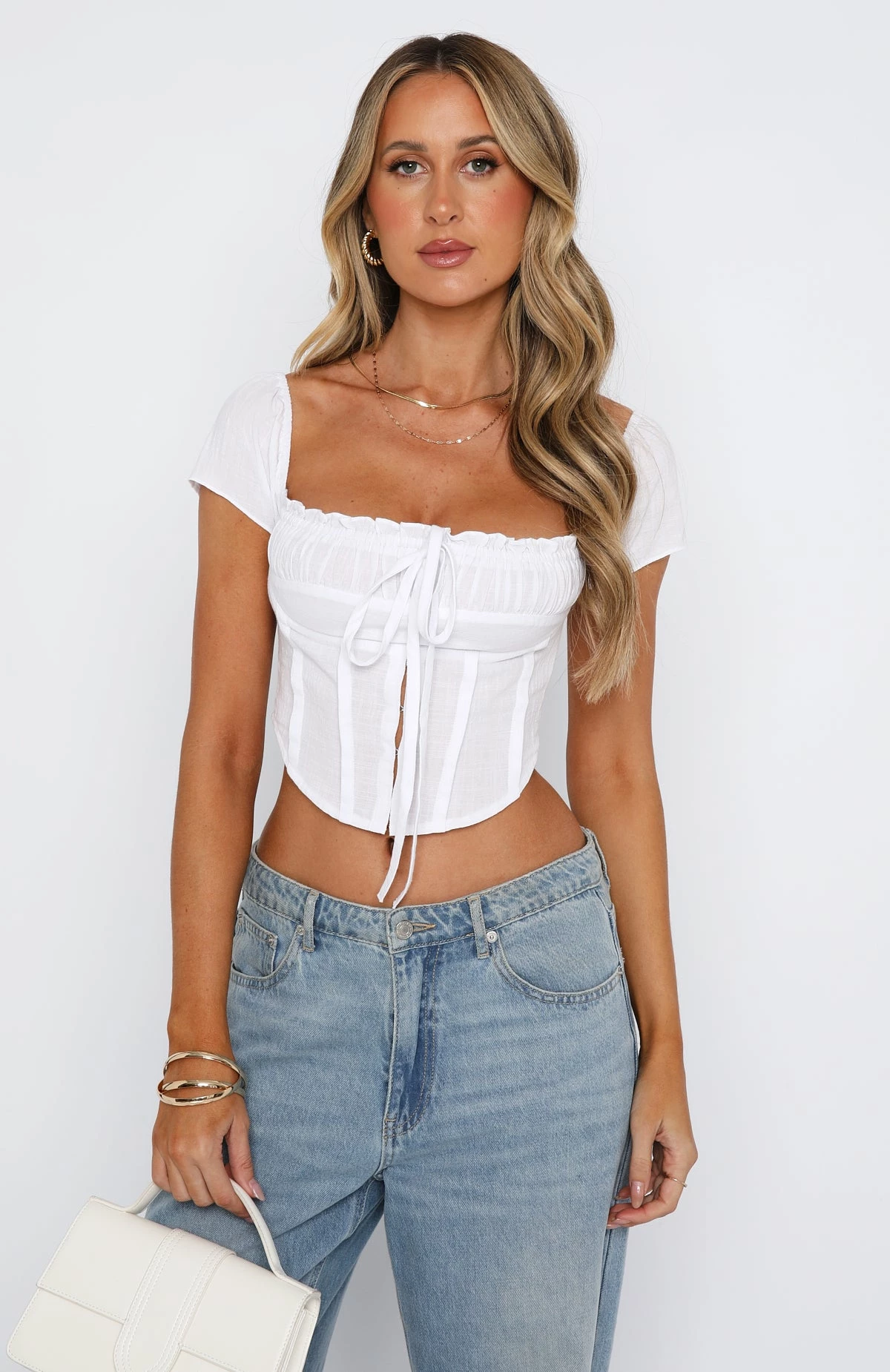 The Lover Of You Top White is fun and flirty for your weekend plans. Featuring an adjustable tie-up front detail, square neckline, hook & eye front design, frill hem detail and open-midriff detail. Keep the look effortless with jeans and your go-to sneakers.