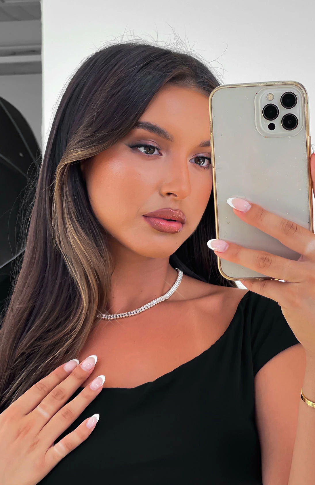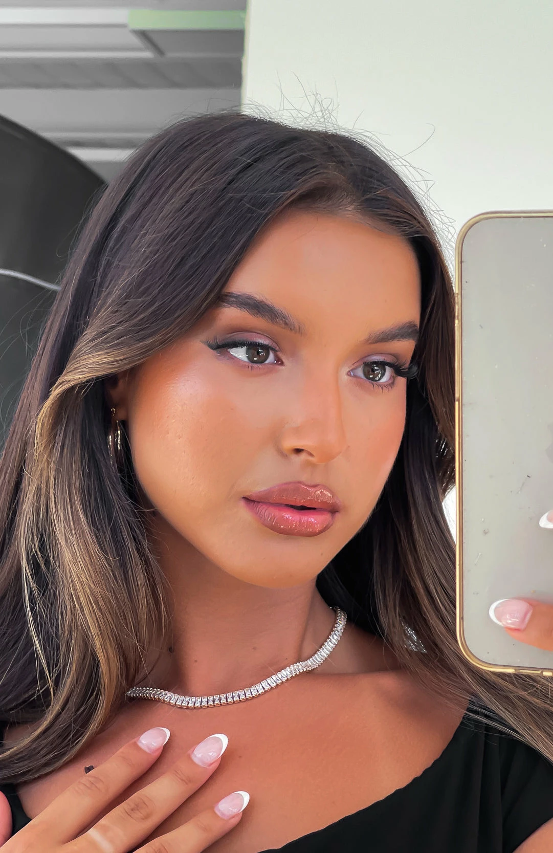 The Maverick Tennis Necklace in Gold will elevate your look! Featuring a thin, flat gold chain with diamanté detail. We are in love!