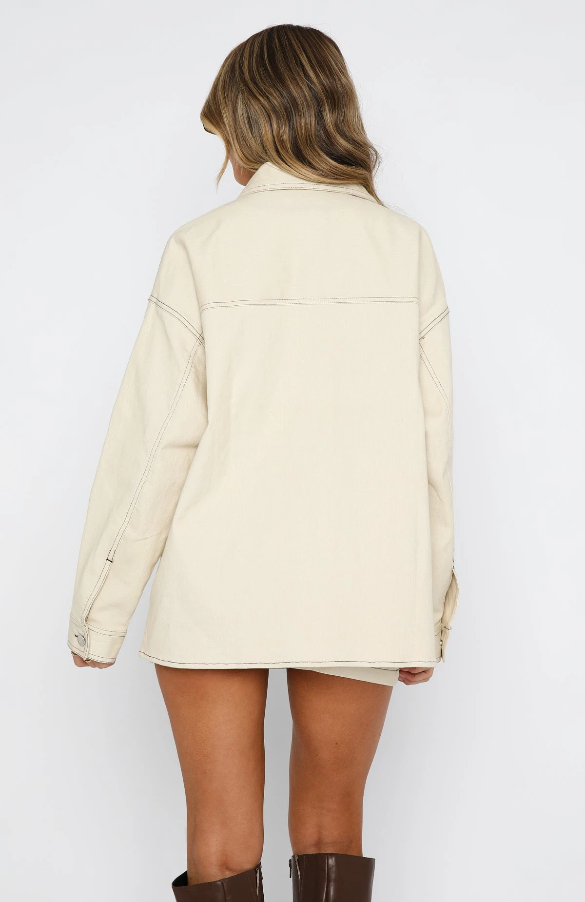 The Meet Me Backstage Oversized Jacket Cream were made for those last-minute plans! This jacket is an oversized fit and features collared neckline, front button and cuff closure, front pockets and contrast stitching. We love this paired with the matching Lesson Learned Mini Skirt and sneakers for a look we love!