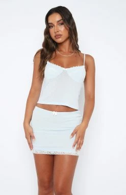 Show up and show off in the Miss California Bustier in Blue. Featuring thin, adjustable straps, boning in bodice, zipper centre back, floral charm detail centre front and lined fabric. Complete the look with the matching Just A Party Mini Skirt and perspex heels for a look we love!