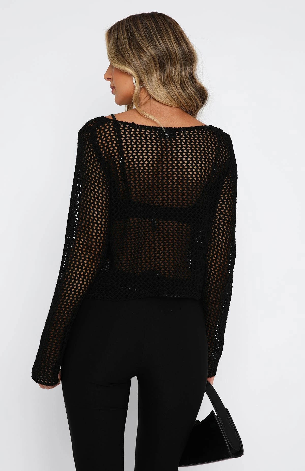 The Mixed Emotions Long Sleeve Crochet Top in Black is sure to nail major trends this season! Featuring long sleeves and crochet fabric. We love this paired with a cargo skirt and slides for a look we are obsessed with!