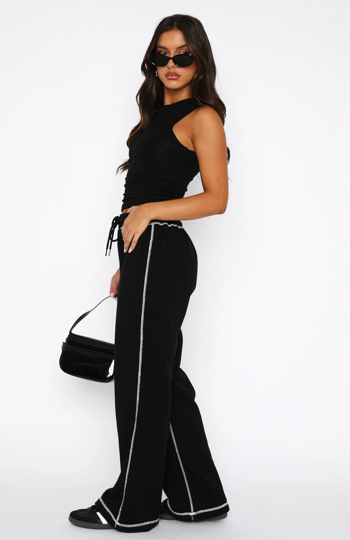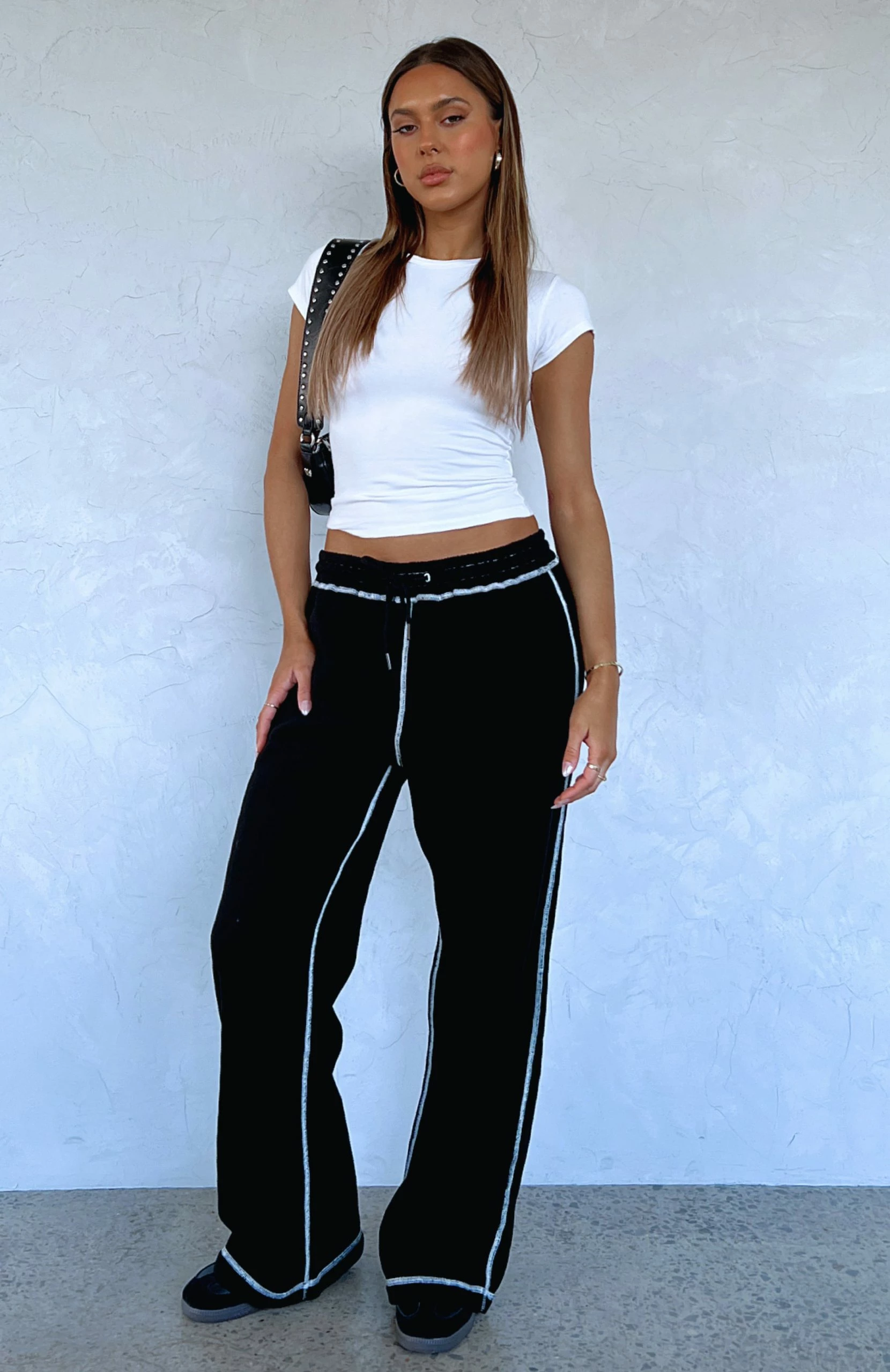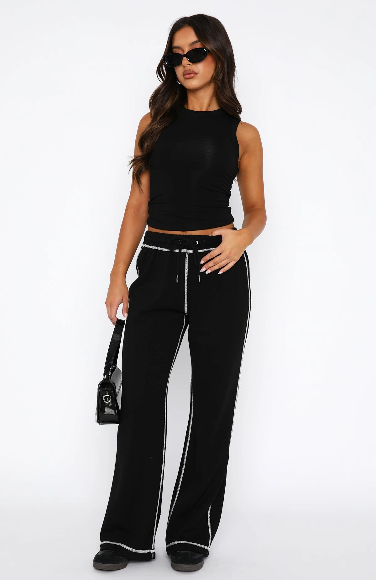 We’re bringing you an everyday pant, designed with long Sunday afternoons in mind. The Monday Mood Low Rise Pants Black features a thick elasticated waistband, soft textured waist band and lining, white contrast stitching, high rise fit and straight leg design. Pair with a fitted tee and your go-to snugs for lounge worthy fit’!
