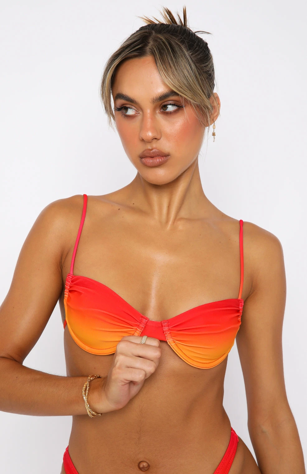 The More Than A Dream Bikini Top in Sunset Ombre pairs perfectly with salty hair and sun-kissed skin. This lined bikini top features thin adjustable straps, underwired bust cups and no padding. Pair with one of the matching Lost Horizon Bikini Bottoms for the perfect beach day look.