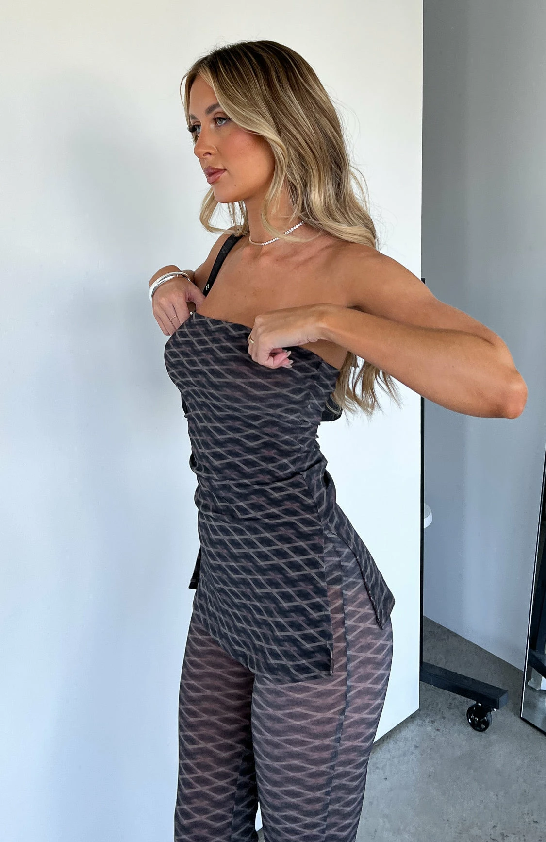 Make a statement in the No Vacancy Top Chocolate Argyle, cut from a mesh fabric in and strapless and fitted silhouette. Features a strapless fit, ruched side design, grip tape, full length with side split design, lined and gorgeous printed fabric. Looks best paired with the matching No Vacancy Pants!