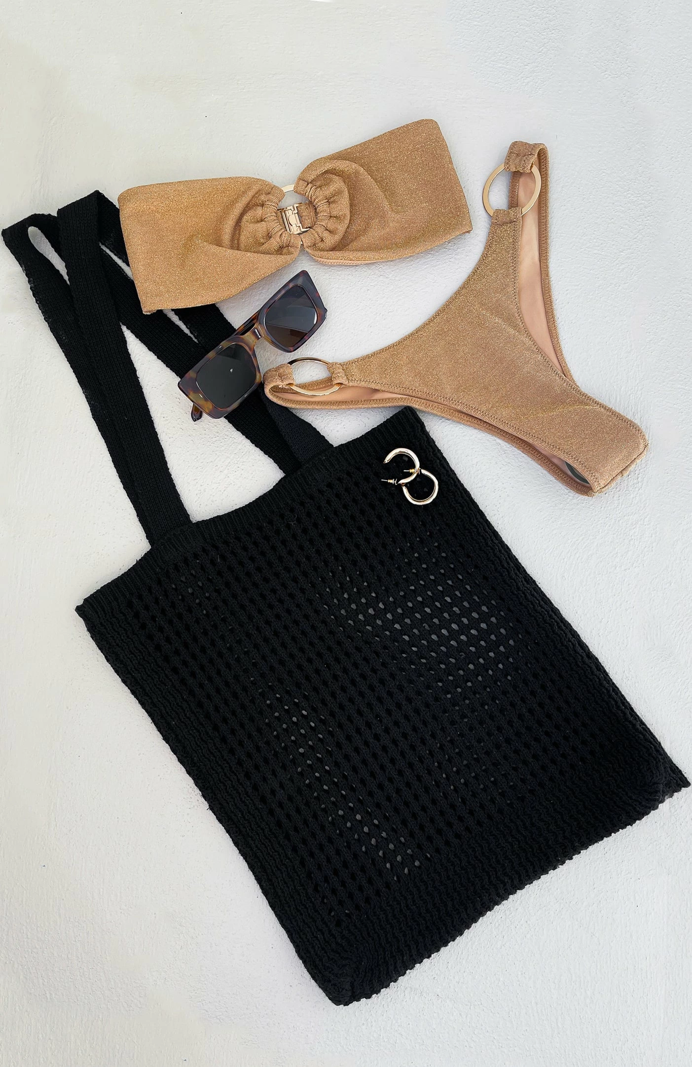 What’s a trip to the beach without a beach bag? The Ocean Shores Tote Black features thin straps, knit and light weight fabric. Pair with your favourite pair of White Fox Swim and live your best vacay vibes.