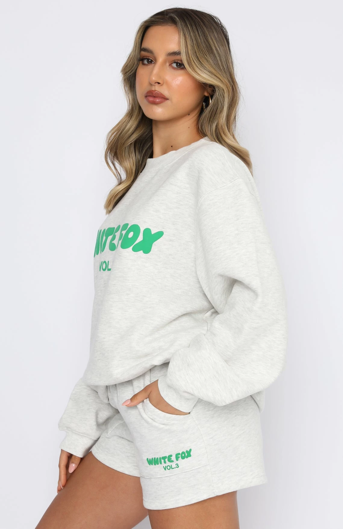 Your new favourite sweater has arrived the Offstage Sweater in Glacier Grey. This oversized sweatshirt has a high scooped neckline, ribbed neckline, cuffs and hem, puff print logo centre front and super soft fleece lining for extra comfort. Complete the tracksuit set with the Offstage Sweatpants or Lounge Shorts. For an extra style point add the Offstage Cap.