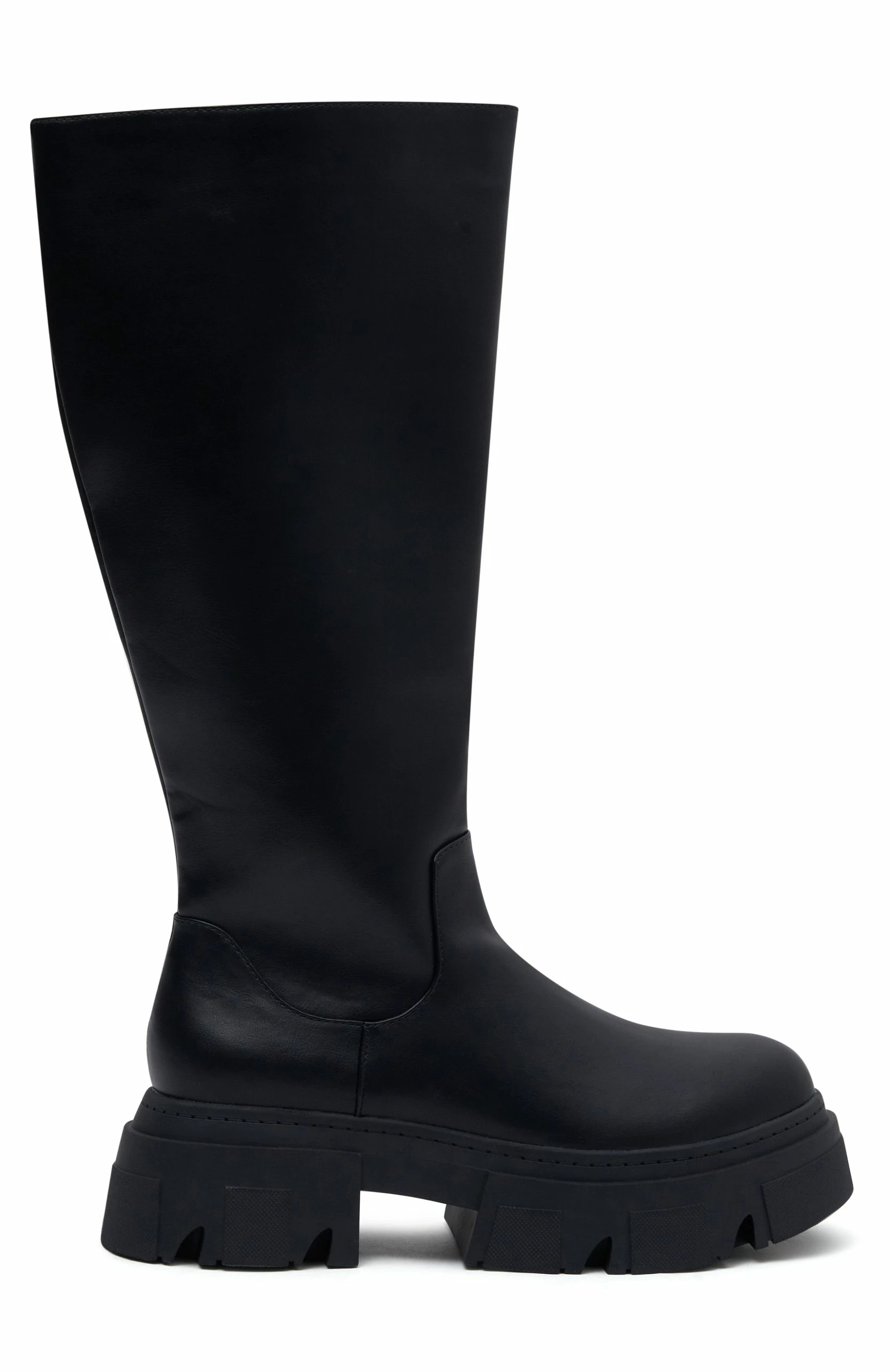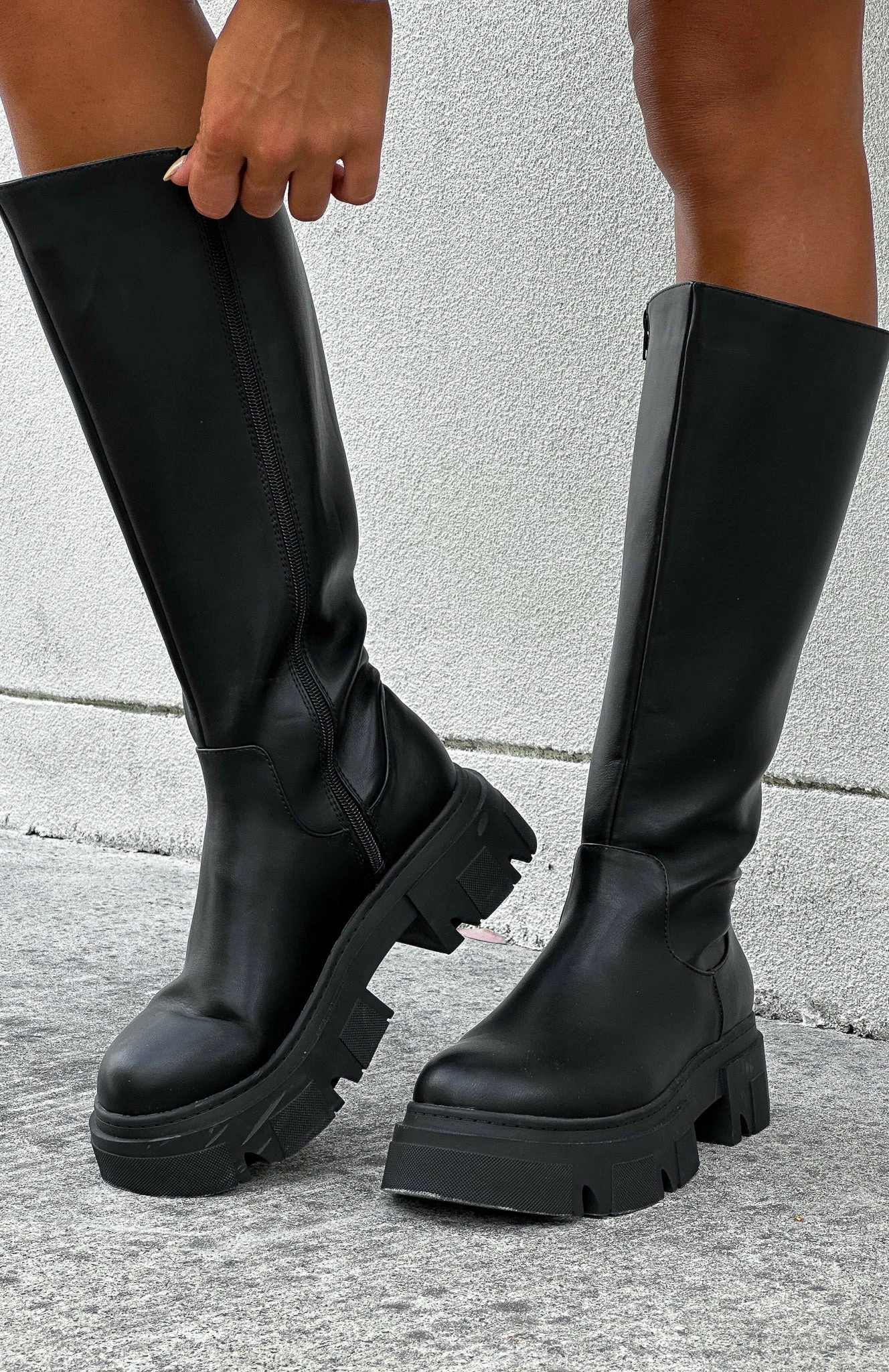 The Paddy Boots in Black will elevate your look! Featuring a round toe, inner zip fastening and PU fabric. We are obsessed!