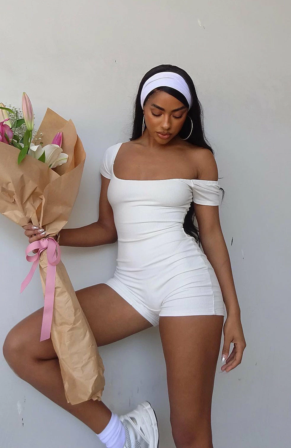We love the Places To Be Playsuit in White for a total dream girl look. Featuring short sleeves, straight neckline, mini short length and lined, ribbed stretch fabric. We love this paired with slides and sunglasses for the perfect summers day outfit!