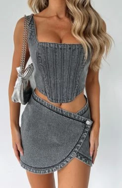 This versatile piece is perfect for any occasion, whether it’s a casual day out or a party night. The Present Yourself Denim Bustier Black Wash features thick straps, straight neckline, lace-up back design and thick adjustable straps, lined fabric. To complete the look style this with your favourite White Fox Jeans and platform slides.