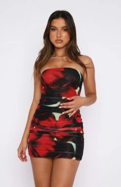 Ibiza Nights Strapless Mini Dress Red Hibiscus