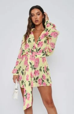 You Drive Me Crazy Long Sleeve Mini Dress Lemon Rose