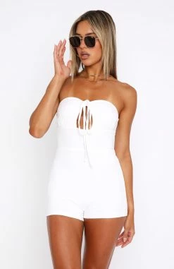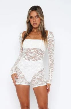 Change Of Plans Knitted Long Sleeve Playsuit White