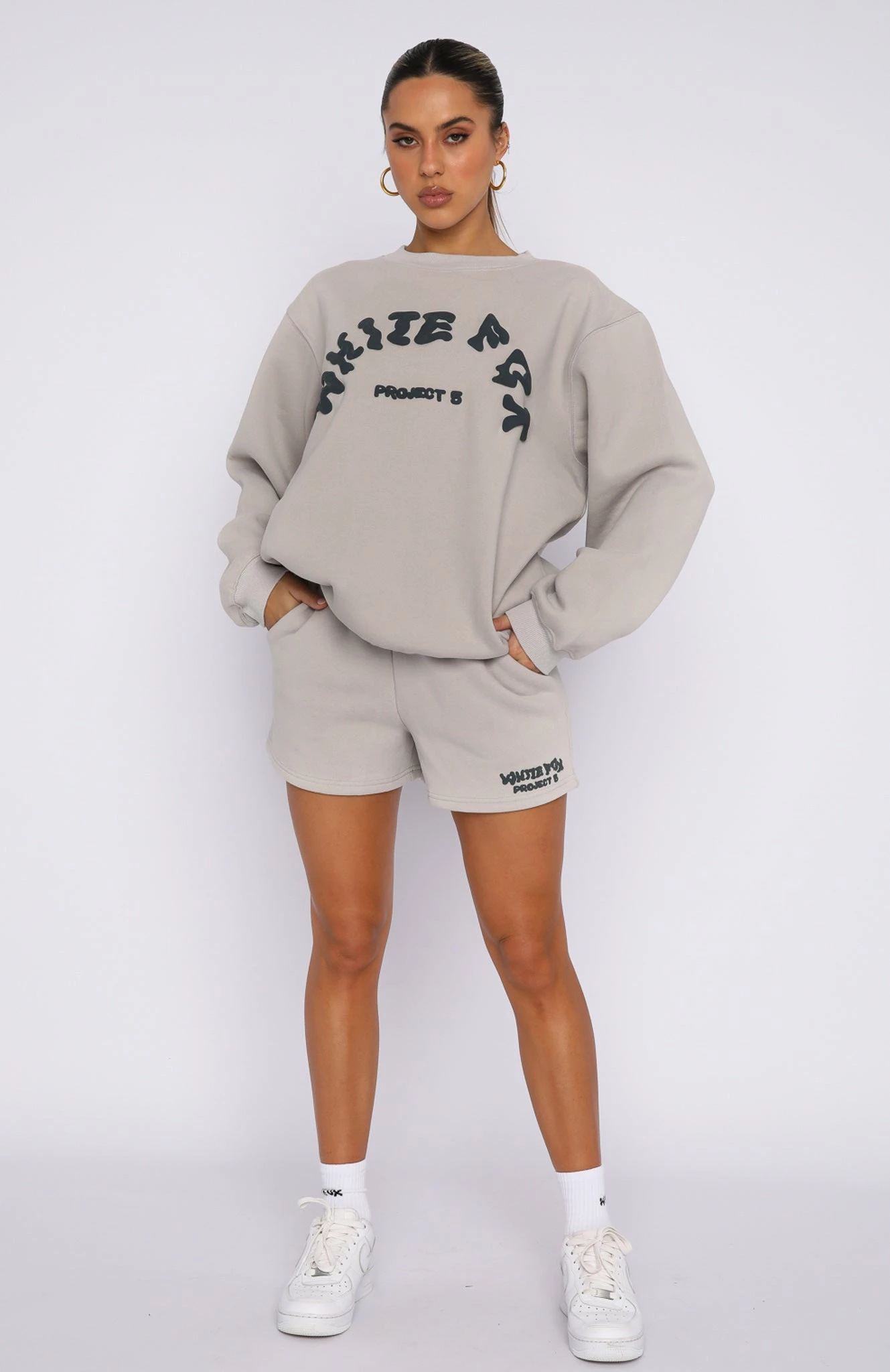 Stay cute and comfortable with the Project 5 Lounge Shorts in Lunar. Featuring a loose relaxed fit with an elasticated high waistband with drawstring, side pockets, soft fleece fabric for extra comfort and puff print logo front side. We love this paired with a Project 5 Sweater/Hoodie or Top!