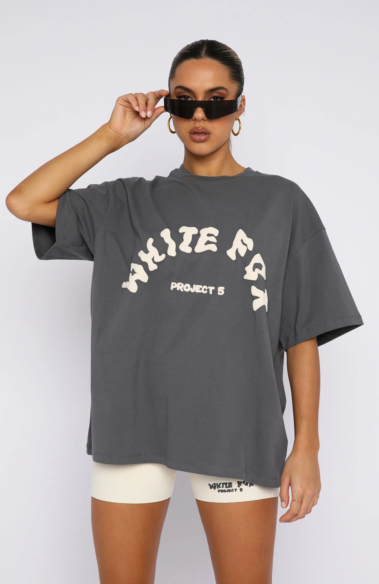 Switch up your stay at home look with the Project 5 Oversized Tee in Volcanic. It is an oversized fit with slouch shoulders, round neckline, and a puff print logo centre front. We love this paired with one of the Project 5 bottoms and sneakers for the perfect off-duty look.
