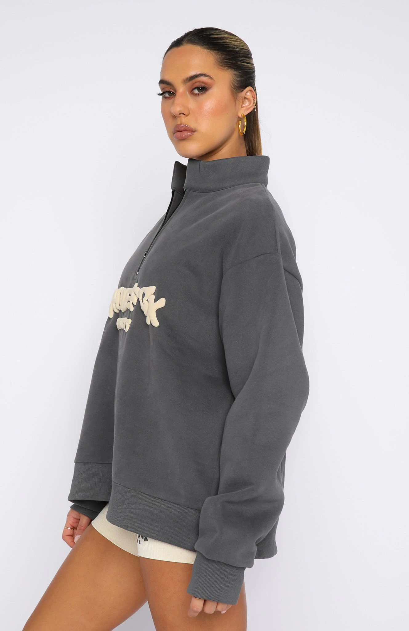 The Project 5 Zip Front Sweater in Volcanic is a staple in your at-home collection. Featuring an oversized fit, zip front, ribbed hemline and cuffs, distorted puff print logo centre front and back and fleece lined. To complete this tracksuit set with the Offstage Sweatpants or Lounge Shorts for the perfect off-duty look.