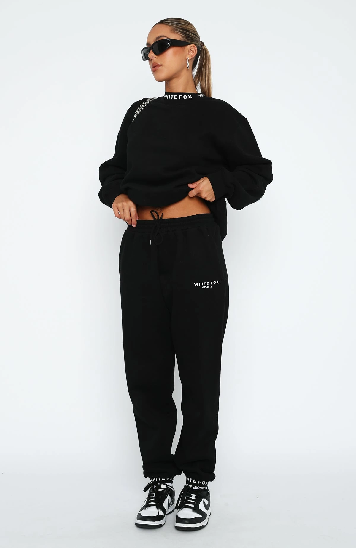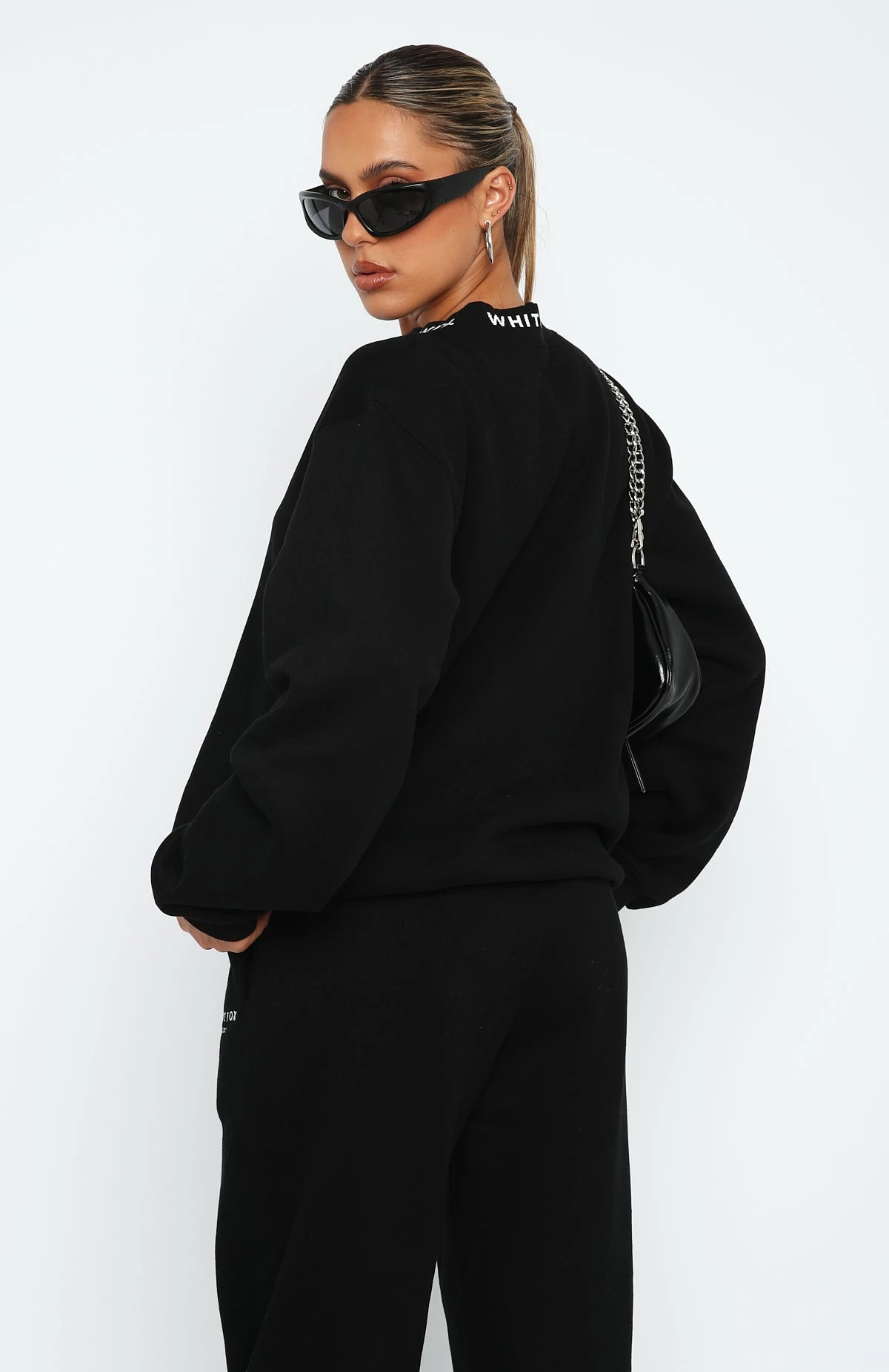 Stay warm in style with the Put It On Repeat Oversized Sweater in Black. This oversized sweatshirt has a high scooped neckline, ribbed neckline with printed logo design, cuffs and hem and super soft fleece lining for extra comfort. Pair with the matching Put It On Repeat Sweatpants and sneakers for the perfect stay at home look!