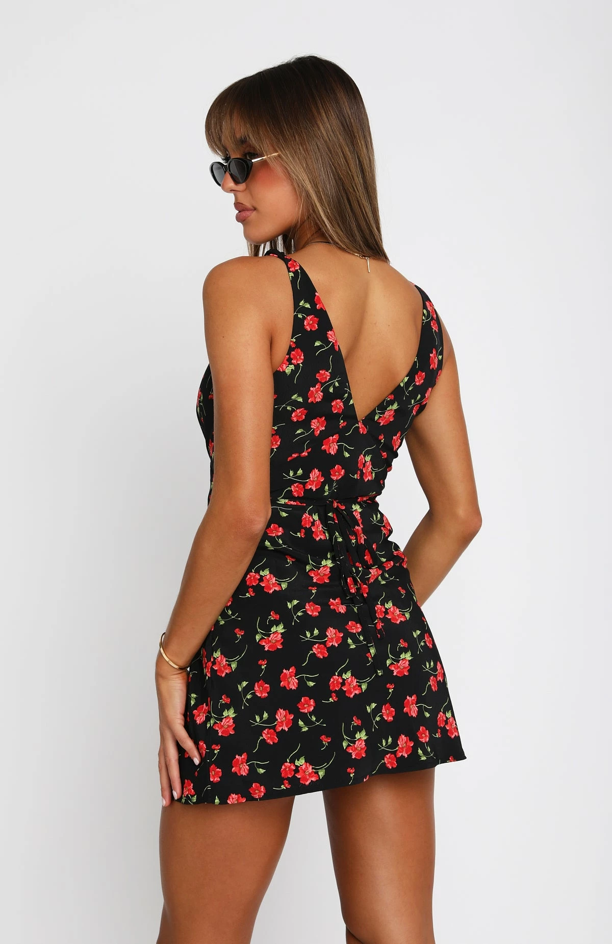 Feel weekend ready with the Say My Name Mini Dress in Red Poppy. Featuring thick straps, plunge neckline, invisible side zipper and tie-waist detail. Complete the look with gold accessories and platform slides for a look we love!