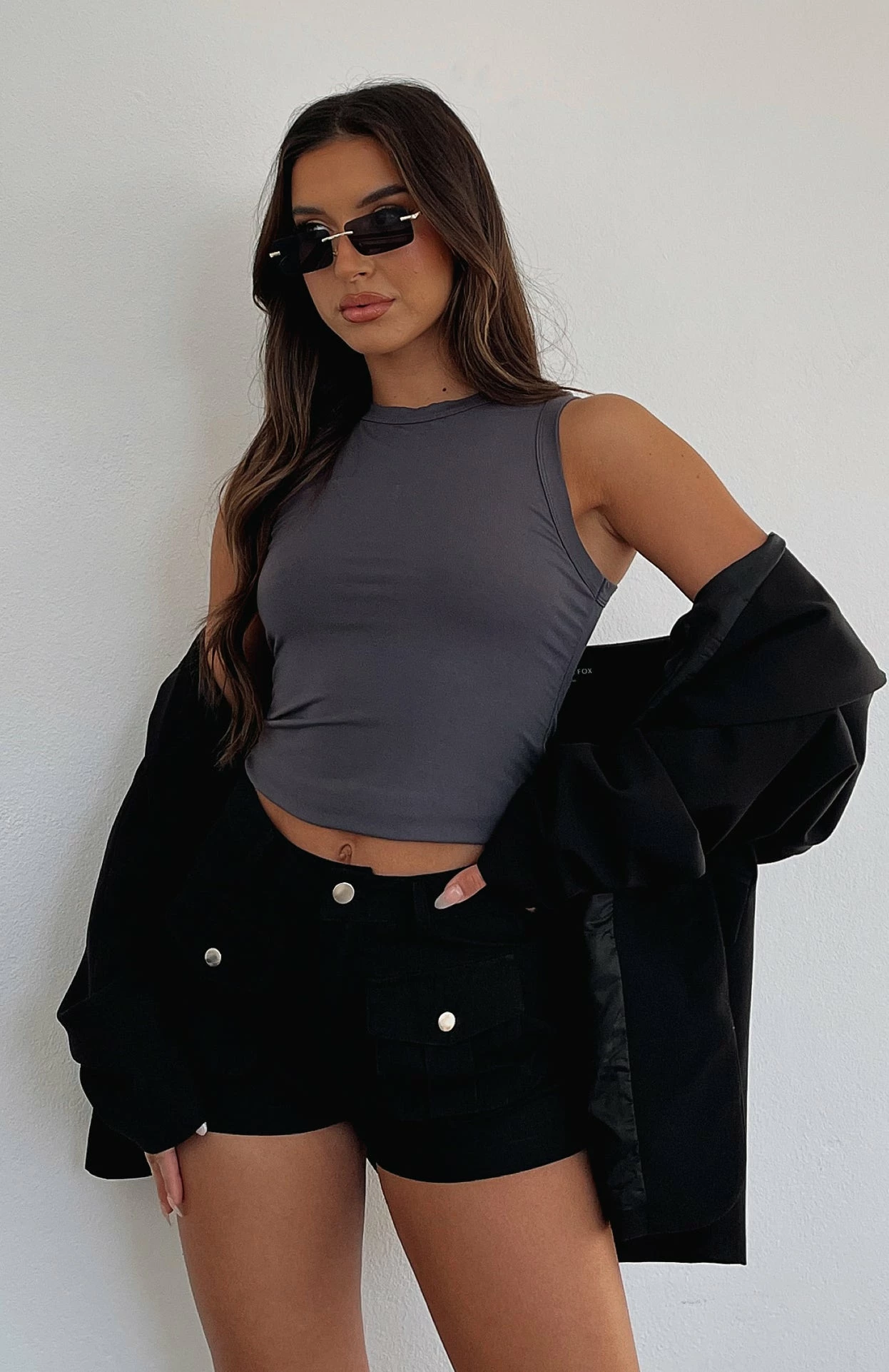 The See You There Cargo Shorts in Black are a wardrobe staple! These shorts are high-waisted, feature button and zip closure, front pockets and belt loops. We love this paired with cute crop and slides for a look we love!
