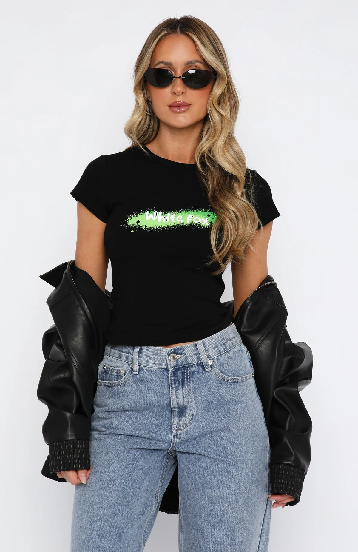 Cute from head to toe in the She’s Unstoppable Baby Tee Black. Featuring short sleeves, high scooped neck-line and printed logo centre front, fitted and soft stretch fabric. Complete the look with cargo pants and sneakers for a look we love!