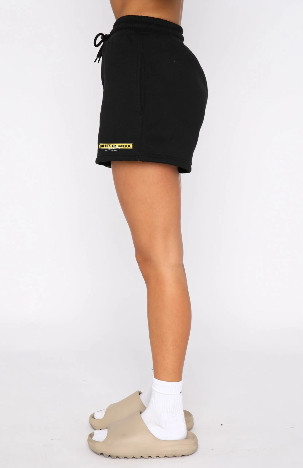 Give your loungewear wardrobe a seriously chic update with the So Predictable Lounge Shorts in Black. Featuring a loose relaxed fit with an elasticated high waistband with drawstring, side pockets, soft fleece fabric, and printed logo front side. Pair with the matching Impress Me Hoodie or Raw Moments Cropped Tee and sneakers to complete the look.